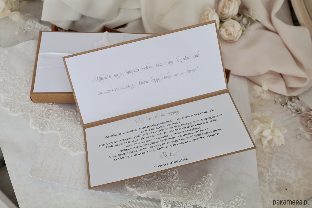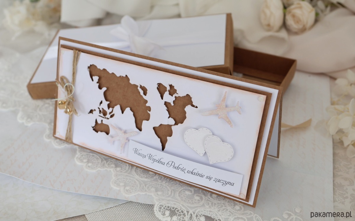Szukasz prezentu „na już” dla pary podróżników? Ta eko kartka ślubna w pudełku łączy estetykę z wygodą. Motyw mapy świata i samolotów tworzy jasny przekaz: „Wasza wspólna podróż właśnie się zaczyna”. Spersonalizuję imiona, datę i życzenia (mogą być jak na zdjęciu lub według Twojej treści). Na życzenie wkomponuję kieszonkę na pieniądze lub bon — elegancko i praktycznie. Pudełko w zestawie.