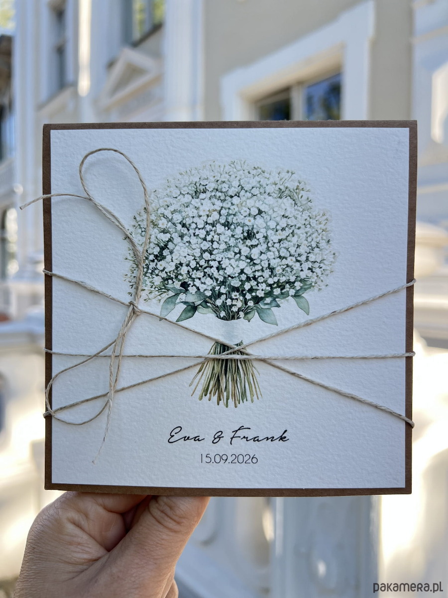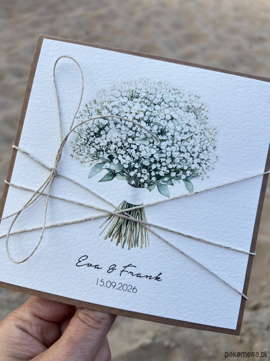 Personalizowana kartka ślubna ręcznie robiona, życzenia na ślub gipsówka