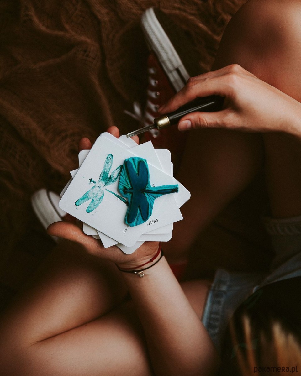 Ich skrzydła mienią się w słońcu jak kawałki tęczy, a każdy ich ruch przypomina, że zmiana nie musi być ciężarem - może być lekka, piękna i pełna wdzięku. Kartka z ważką to symbol odwagi, by iść naprzód, nawet jeśli droga wydaje się niepewna. To zaproszenie, by zatrzymać się na moment, wsłuchać w siebie i dostrzec piękno w tym, co ulotne.