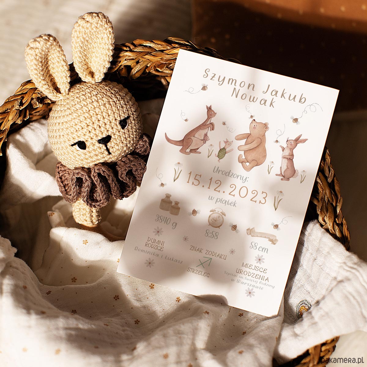 Poniżej postaci umieszczono najważniejsze informacje z chwili przyjścia na świat dziecka.