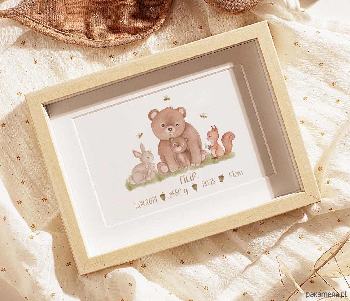 Personalizowana metryczka dla dziecka Obrazek w ramce Zwierzątka leśne