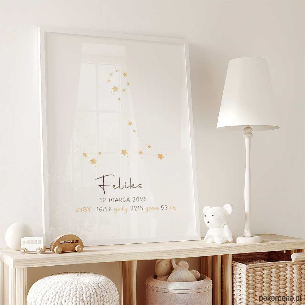Plakat z imieniem dziecka i gwiazdozbiorem