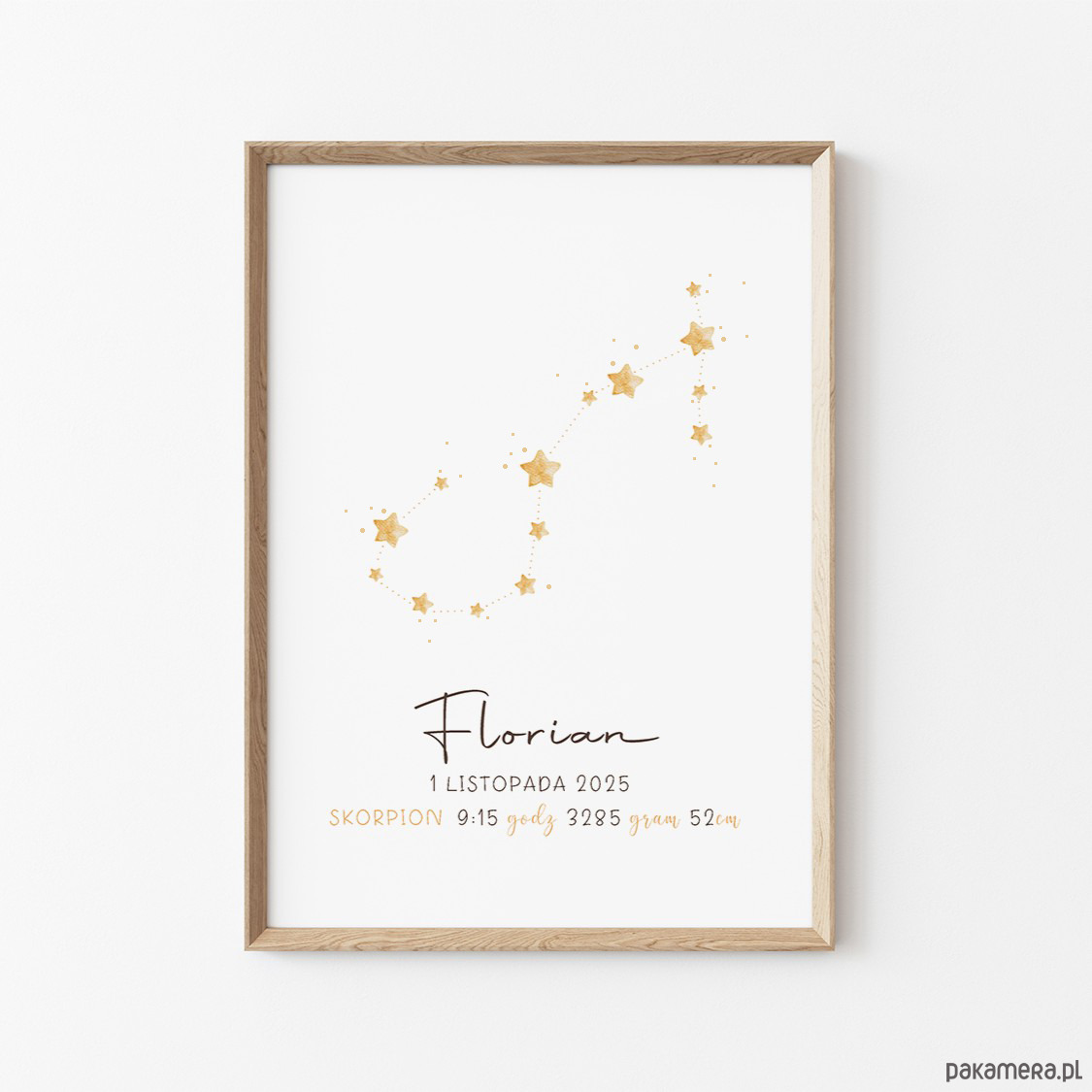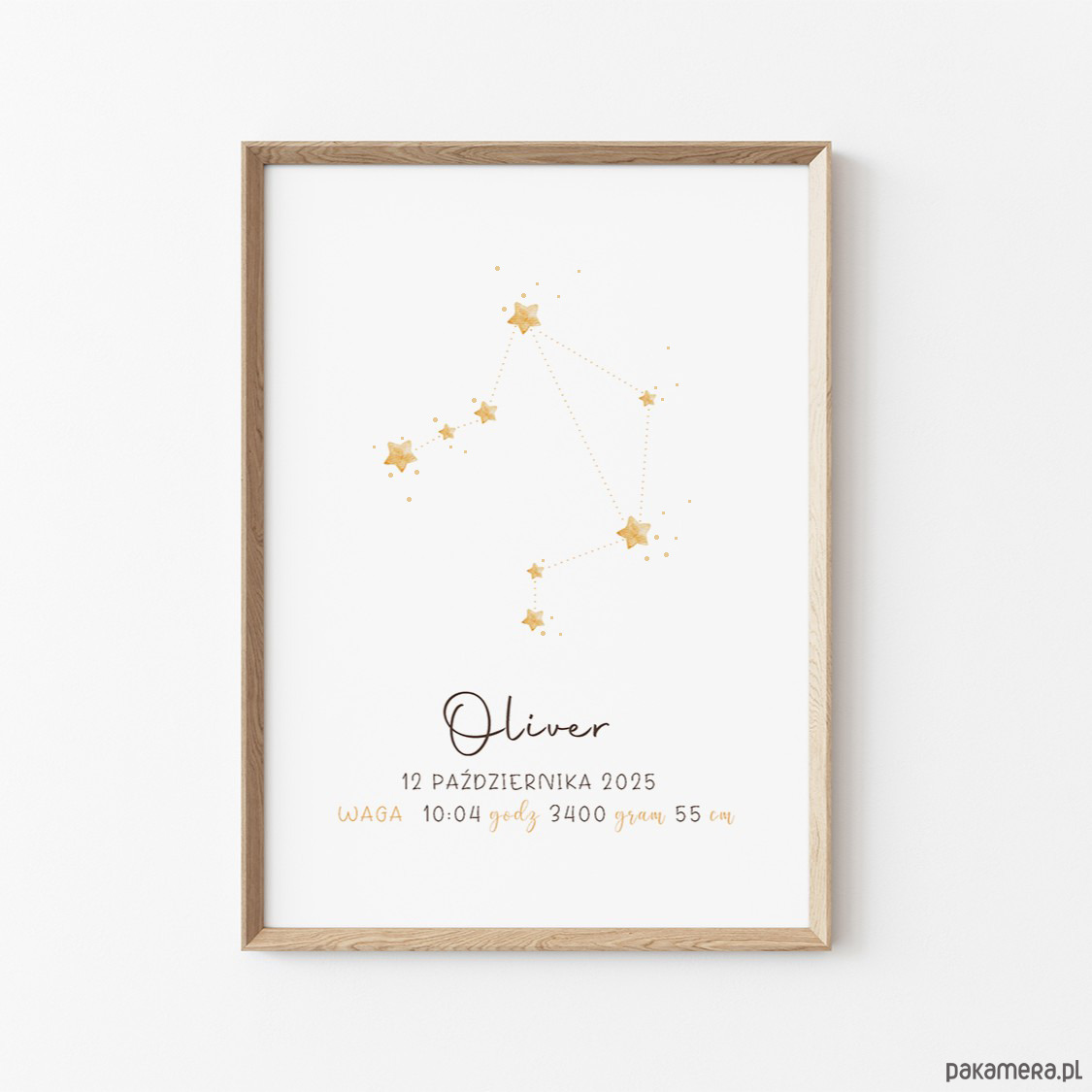 Personalizowana metryczka z gwiazdozbiorem i znakiem zodiaku – wyjątkowa pamiątka narodzin.