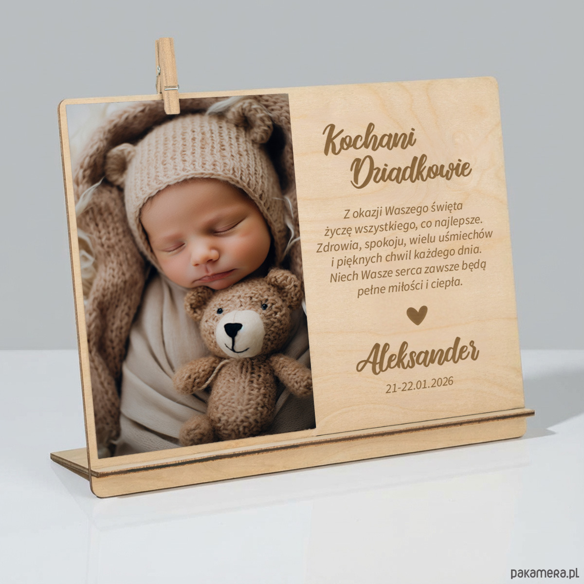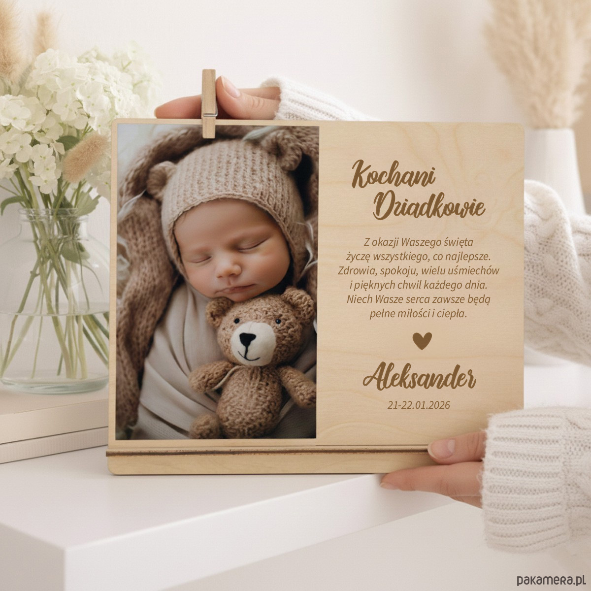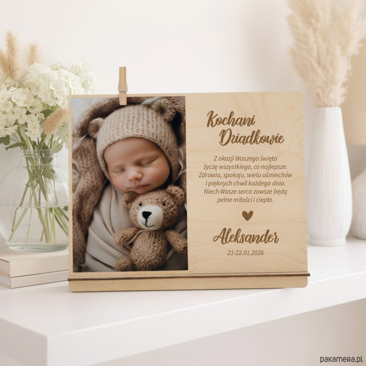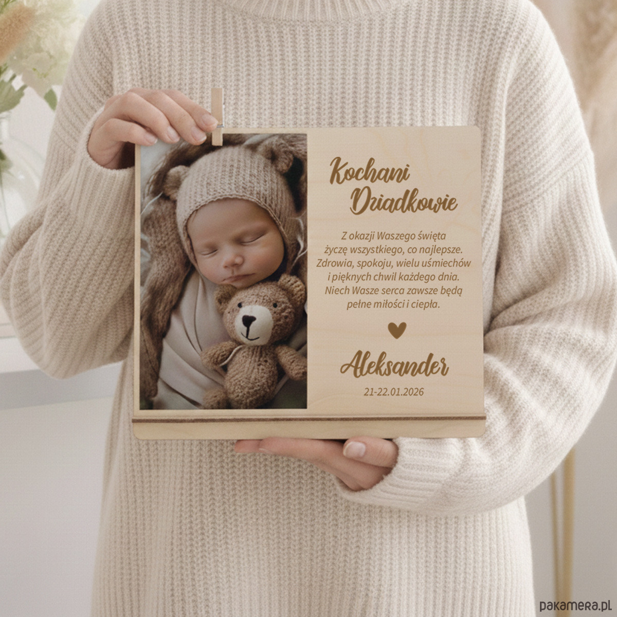 Ta personalizowana ramka na zdjęcie to wyjątkowy prezent, który w piękny sposób wyraża miłość i wdzięczność wobec Babci i Dziadka. Łączy w sobie naturalne piękno drewna, elegancki design oraz osobisty akcent w postaci zdjęcia wnuczka lub wnuczki. Dzięki temu staje się nie tylko dekoracją, ale również pamiątką pełną emocji i ciepła rodzinnego.