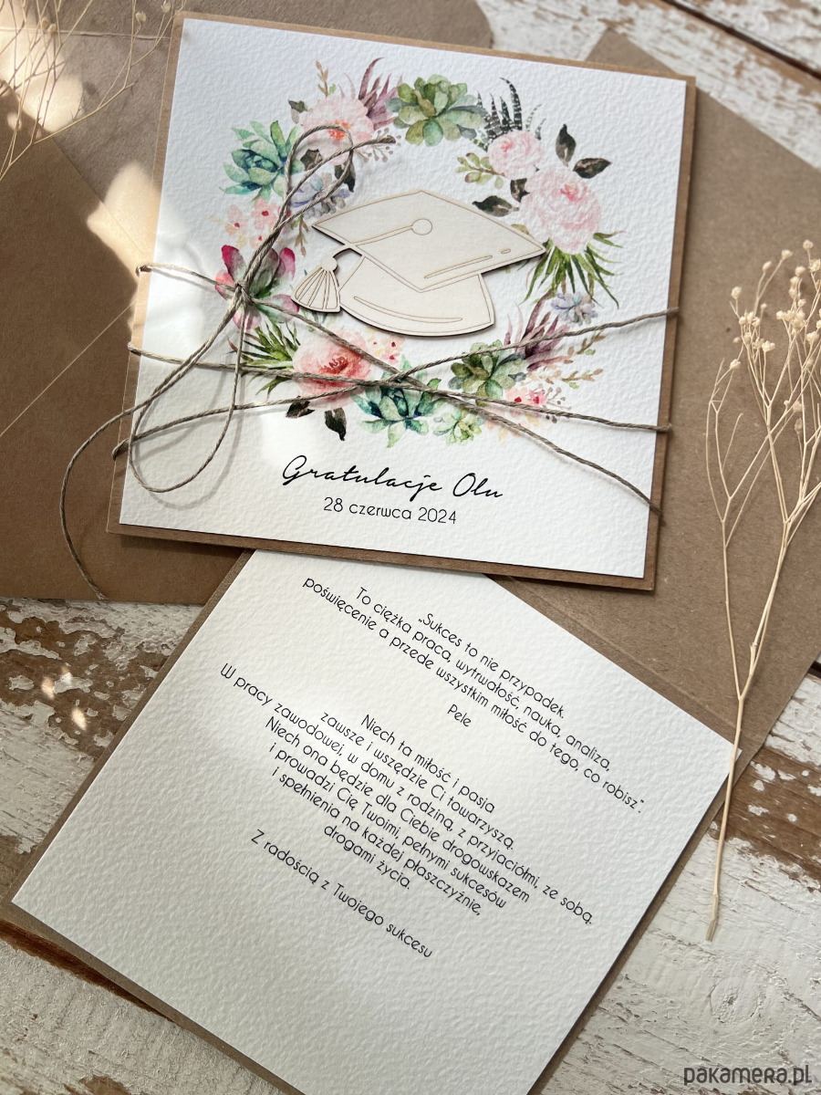 Personalizowana ręcznie robiona kartka gratulacje z okazji zakończenia studiów życzenia