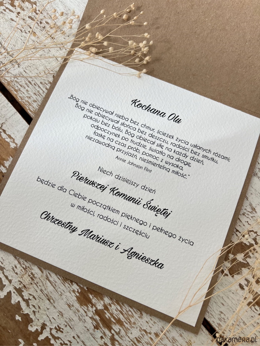 Ta personalizowana kartka to nie tylko kartka. To przejaw bliskości, miłości i dbałości. To wyraz ważności kogoś w naszym życiu. To możliwość stworzenia unikatowego prezentu, który będzie wyrazem emocji oraz podkreśli wyjątkowość dziecka, które przyjmuje Komunię.