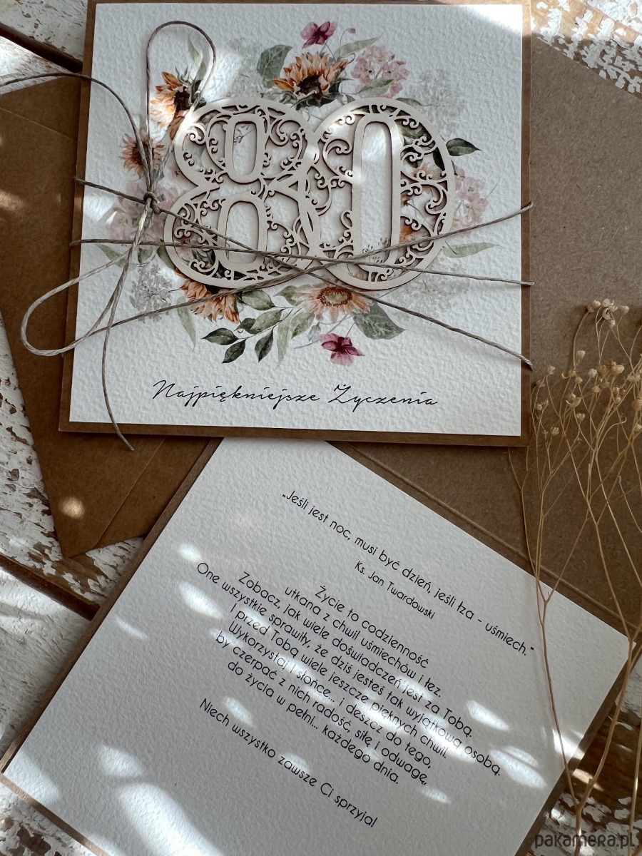 Personalizowana ręcznie robiona kartka życzenia na 80 urodziny