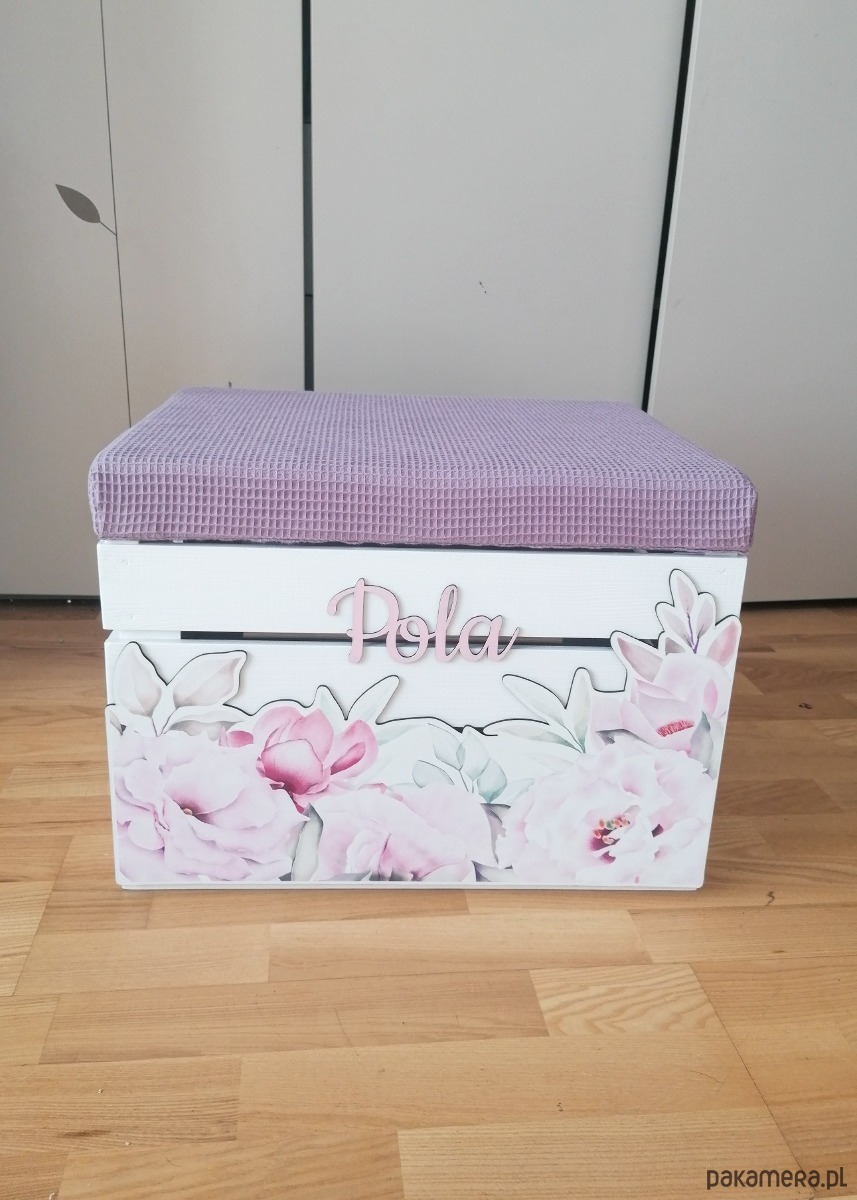 PERSONALIZOWANA SKRZYNIA piwonie z siedziskiem meble dzieciece