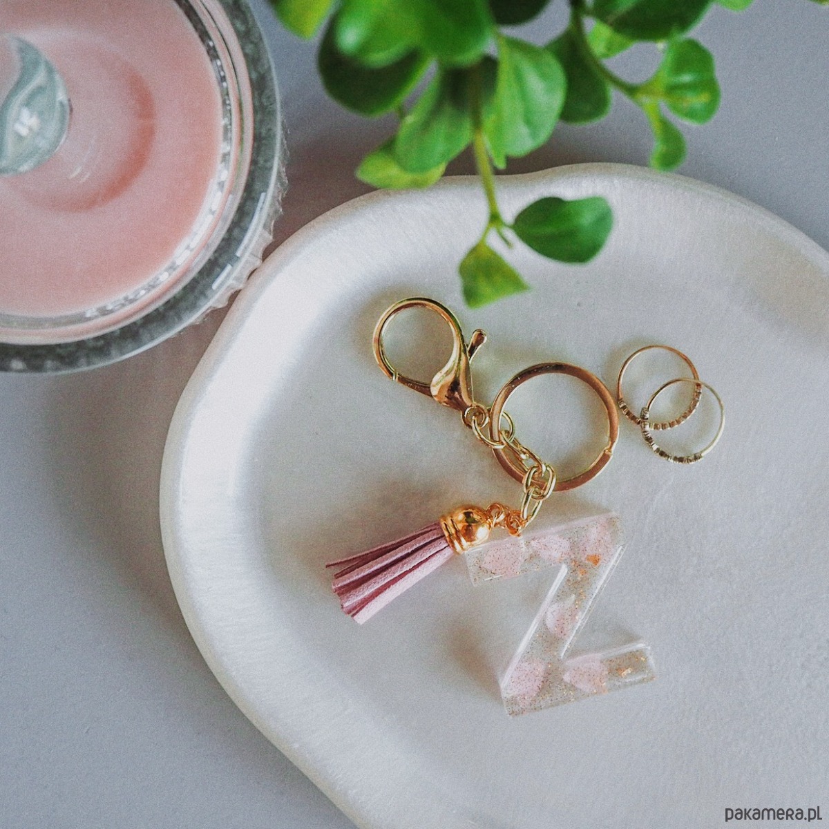 Dwa breloki "C" (brąz) i "B" (kolor jaśniejszy, cynamonowy) bez breloków i chwostów, ze złotym haczykiem.