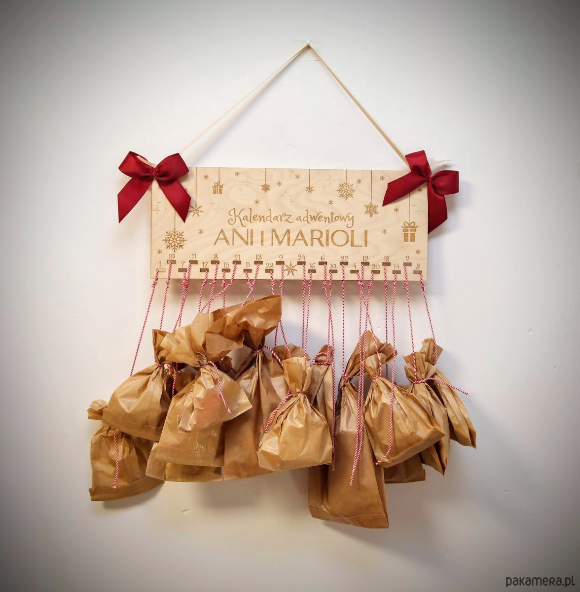 Kalendarz możesz ozdobić według własnego pomysłu – pomalować farbami, udekorować brokatem, naklejkami lub świątecznymi wstążkami. Dzięki temu stanie się unikalną ozdobą Twojego domu i pięknym elementem świątecznego wystroju.
