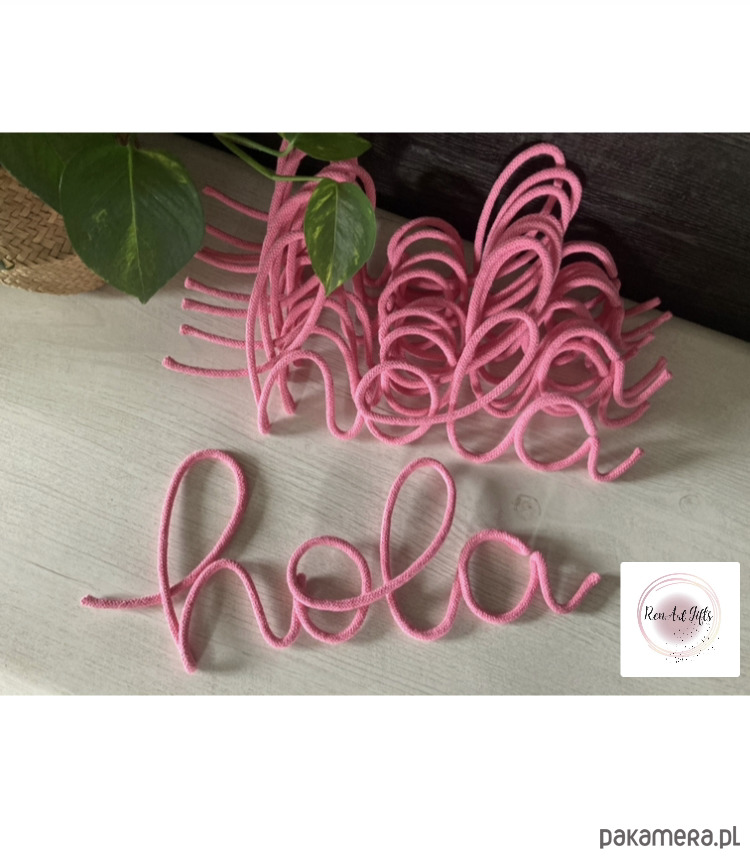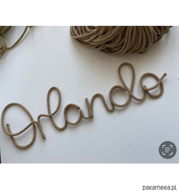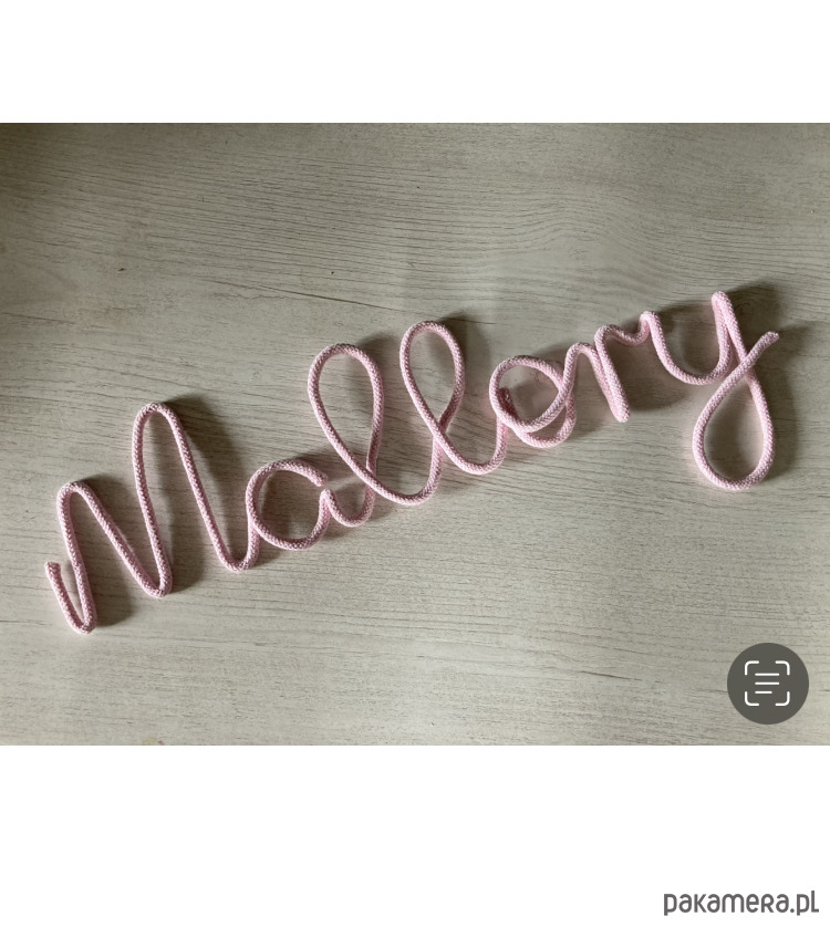 Personalizowany napis ze sznurka bawełnianego I drutu 5 literek