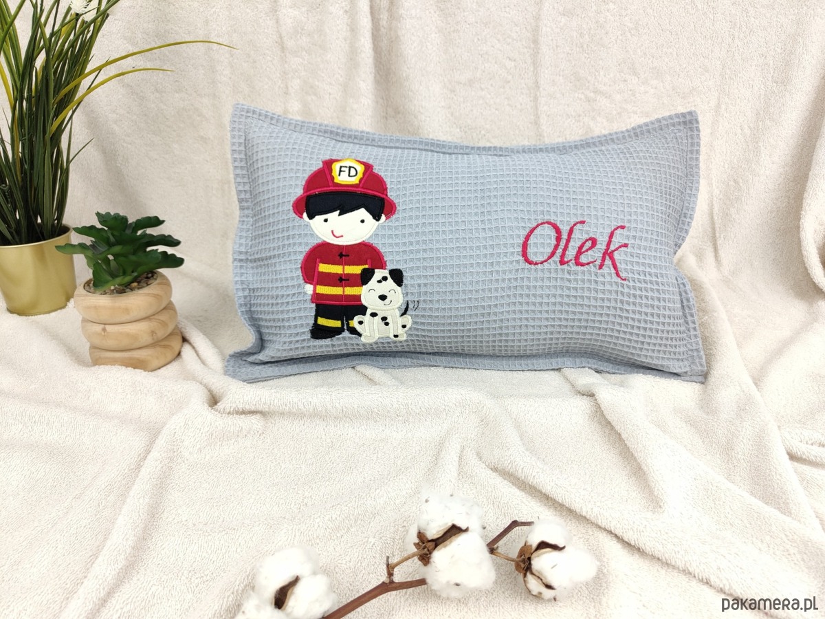 Personalizowany prezent dla chłopca - imienna poduszka ze strażakiem