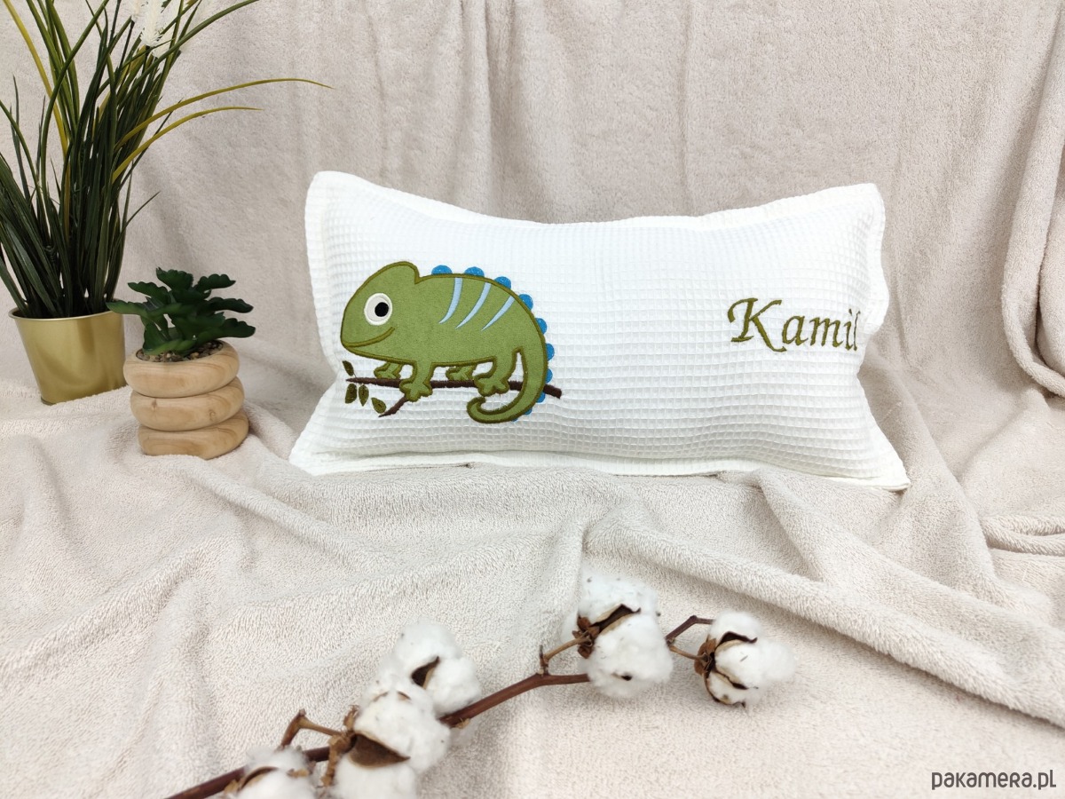Personalizowany prezent dla dziecka - imienna poduszka z kameleonem