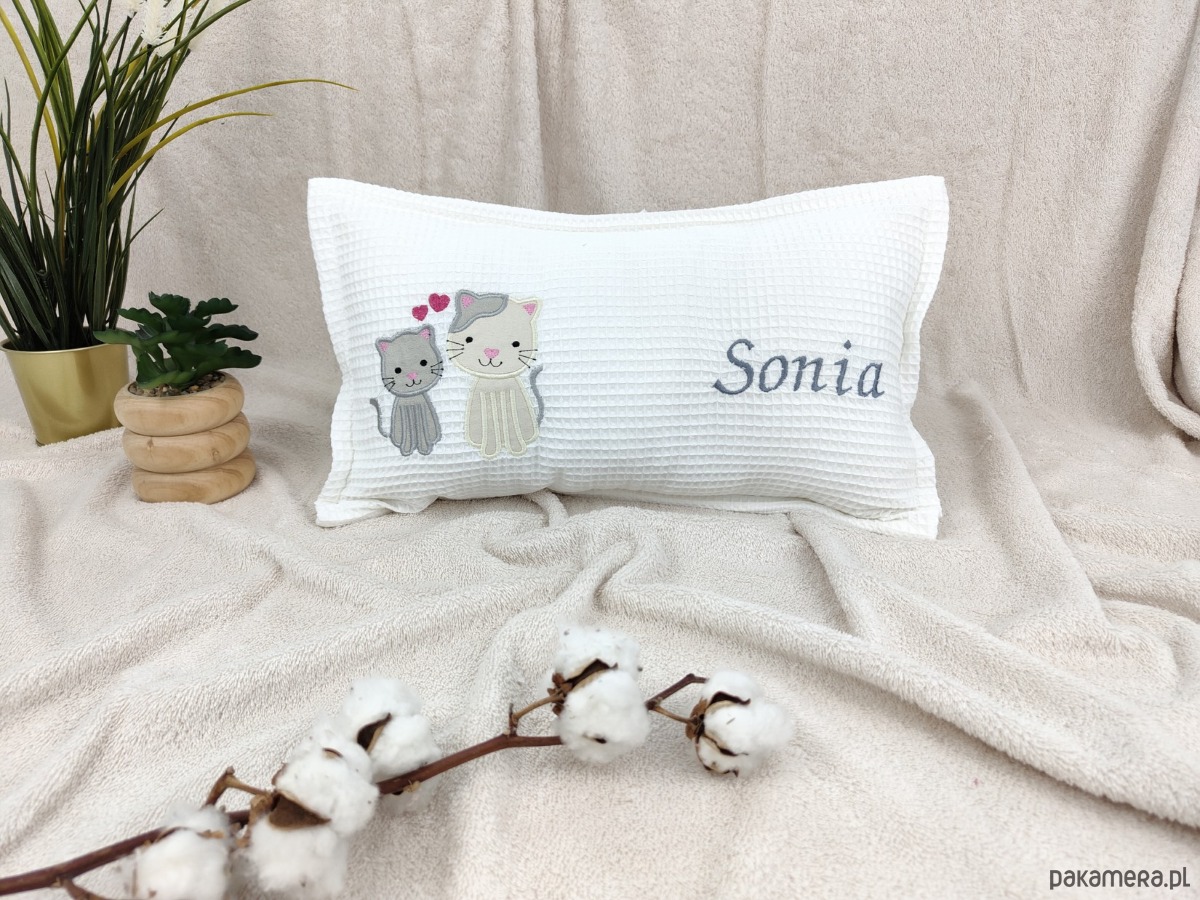 Personalizowany prezent dla dziecka - imienna poduszka z kotkami