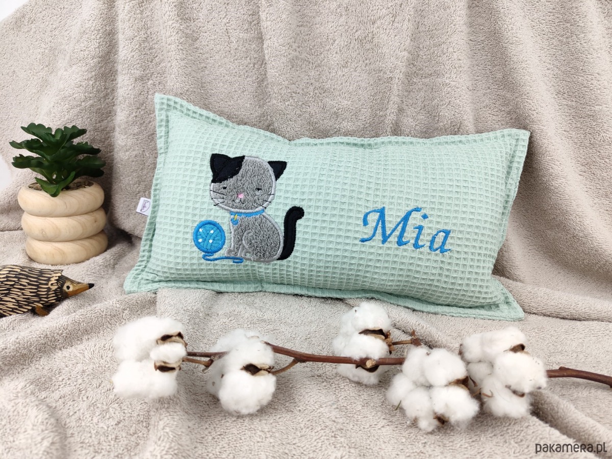 Personalizowany prezent dla dziecka - imienna poduszka z kotkiem