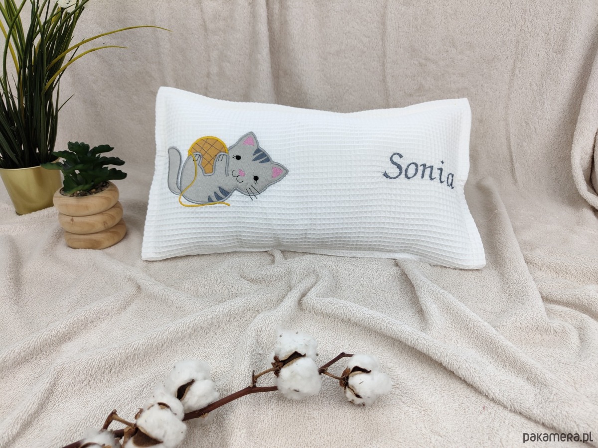 Personalizowany prezent dla dziecka - imienna poduszka z kotkiem