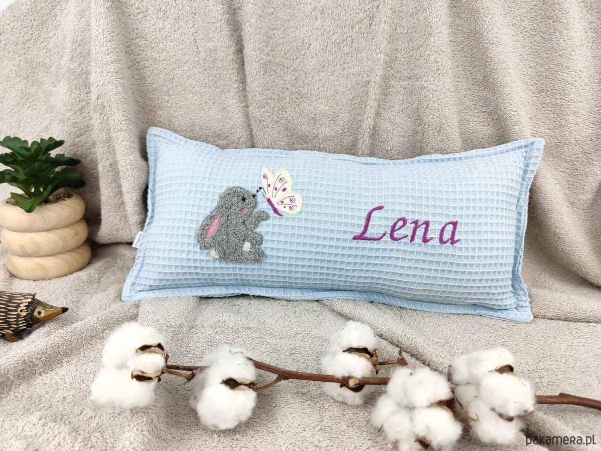 Personalizowany prezent dla dziecka - imienna poduszka z króliczkiem