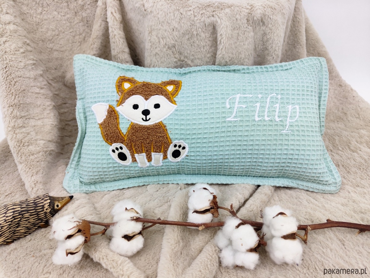 Personalizowany prezent dla dziecka - imienna poduszka z liskiem