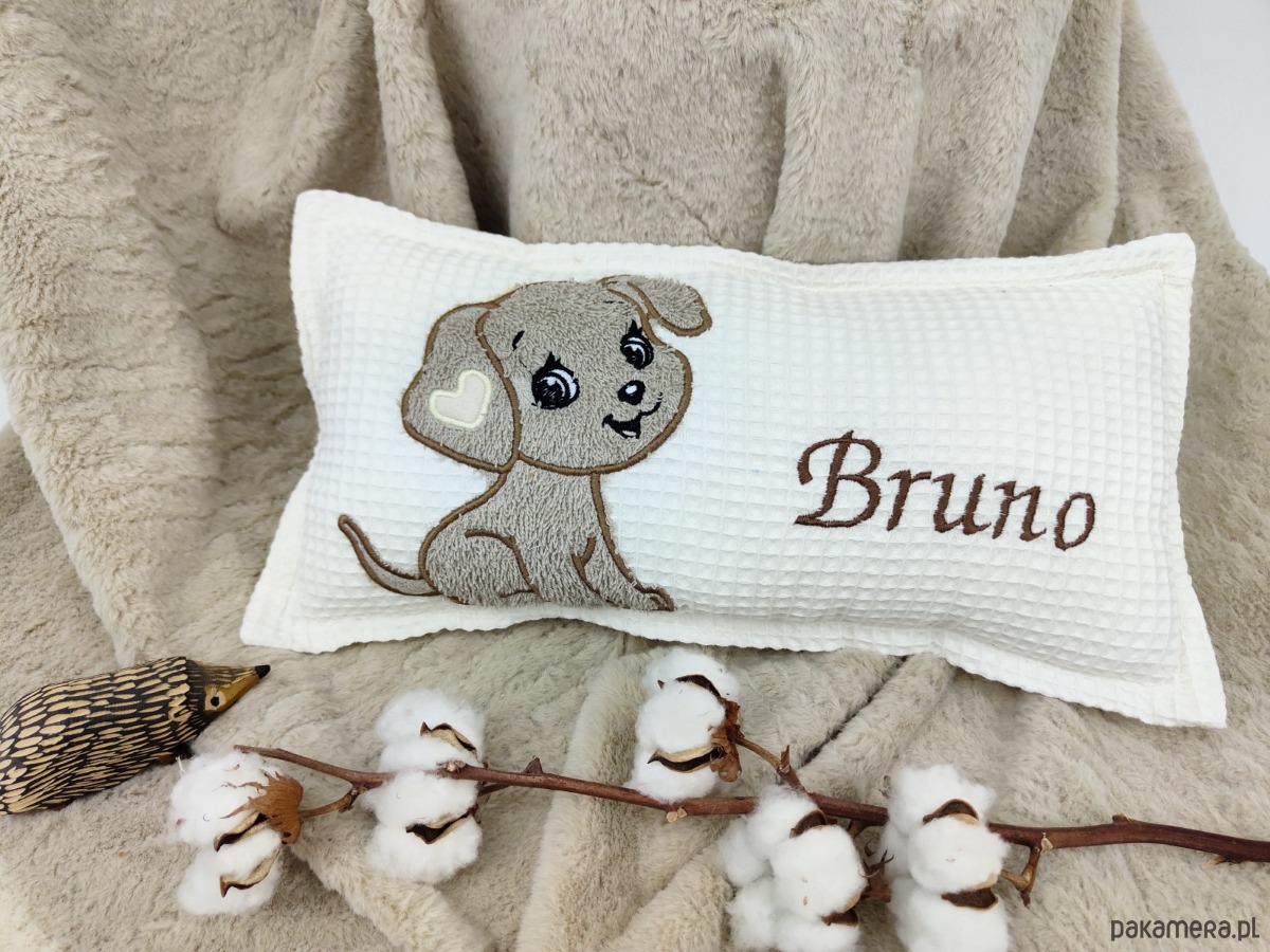 Personalizowany prezent dla dziecka - imienna poduszka z pieskiem
