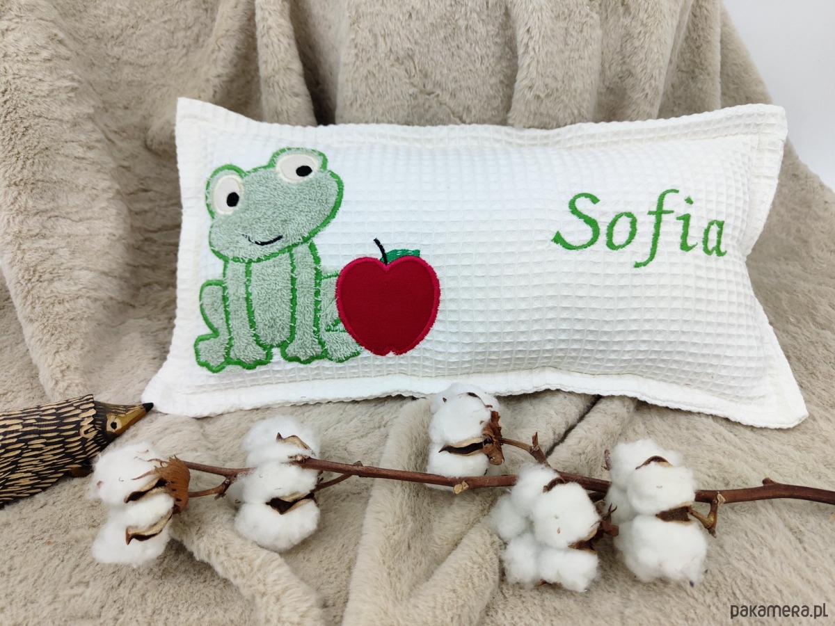 Personalizowany prezent dla dziecka - imienna poduszka z żabką