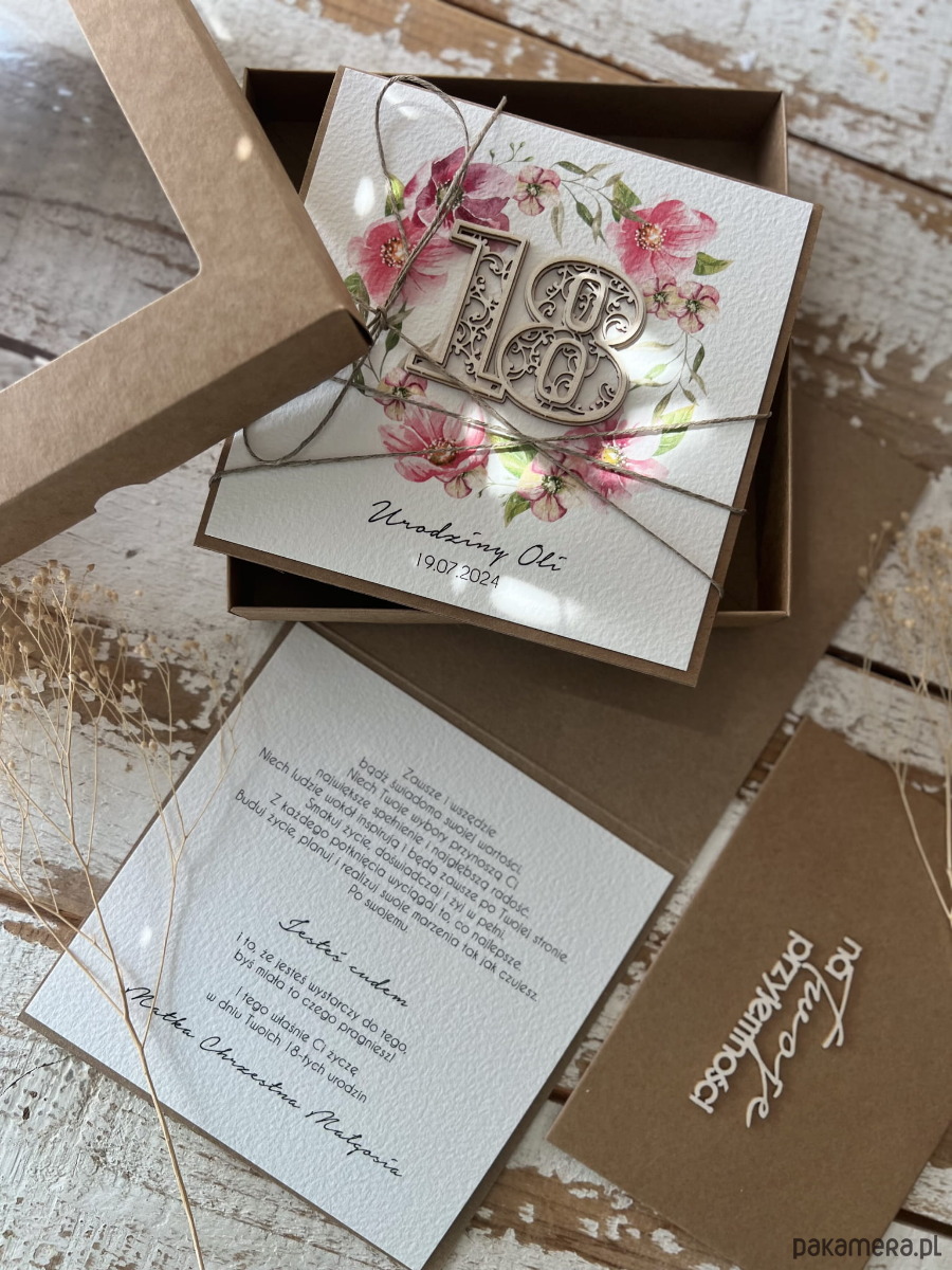 Personalizowany prezent - kartka ręcznie robiona na 18 urodziny w pudełku, po
