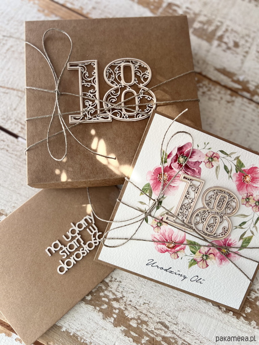 Personalizowany prezent - kartka ręcznie robiona na 18 urodziny w pudełku, po