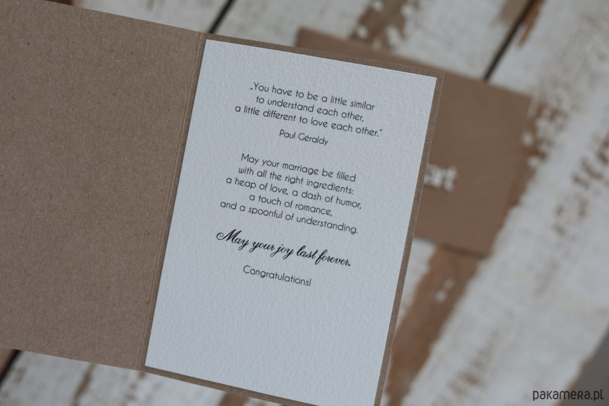 Ta personalizowana kartka to nie tylko kartka. To przejaw bliskości, miłości i dbałości. To wyraz ważności kogoś w naszym życiu. To możliwość stworzenia unikatowego prezentu, który będzie wyrazem emocji oraz podkreśli wyjątkowość młodej pary.