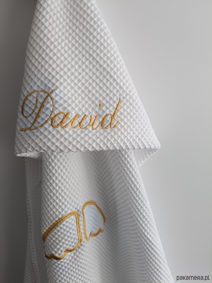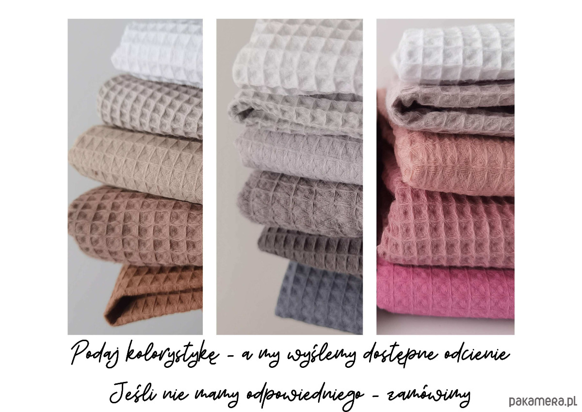 Szyjemy go z naturalnej tkaniny - 100% bawełna typu wafelek, która jest gruba, miękka, chłonna i ma ciekawą fakturę. Jest idealny dla osób z wrażliwą skórą. Kapturek wykonujemy z podwójnej warstwy wafla przez co włosy dziecka szybciej schną. Ma duży rozmiar (120 x 120 cm) - sprawdzi się zarówno dla maluszków jak i 8 - 9 latków.