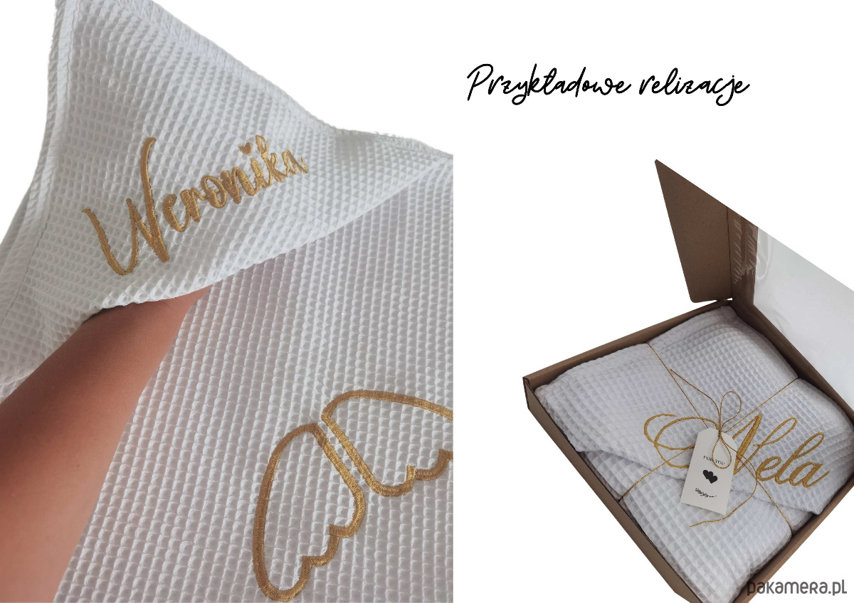 Ręcznik wykonujemy na zamówienie w dowolnym kolorze z dowolnym napisem. Ręcznik pakujemy w ozdobne pudełko na którym możemy umieścić dowolną dedykację dlatego idealnie sprawdzi się na prezent. Imienny ręcznik to doskonałe rozwiązanie dla rodzin które posiadają więcej niż jedno dziecko (ręczniki się nie mylą).