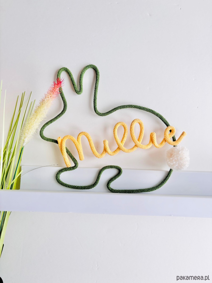 Ten personalizowany królik z imieniem to wyjątkowa dekoracja, która nadaje dziecięcemu pokojowi ciepła i osobistego charakteru. Każdy egzemplarz wykonywany jest ręcznie i tworzony indywidualnie z wybranym imieniem, dzięki czemu staje się niepowtarzalną pamiątką.