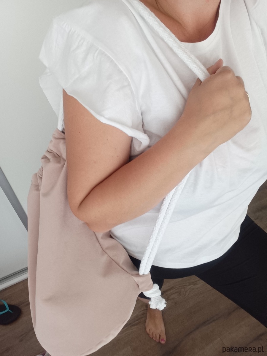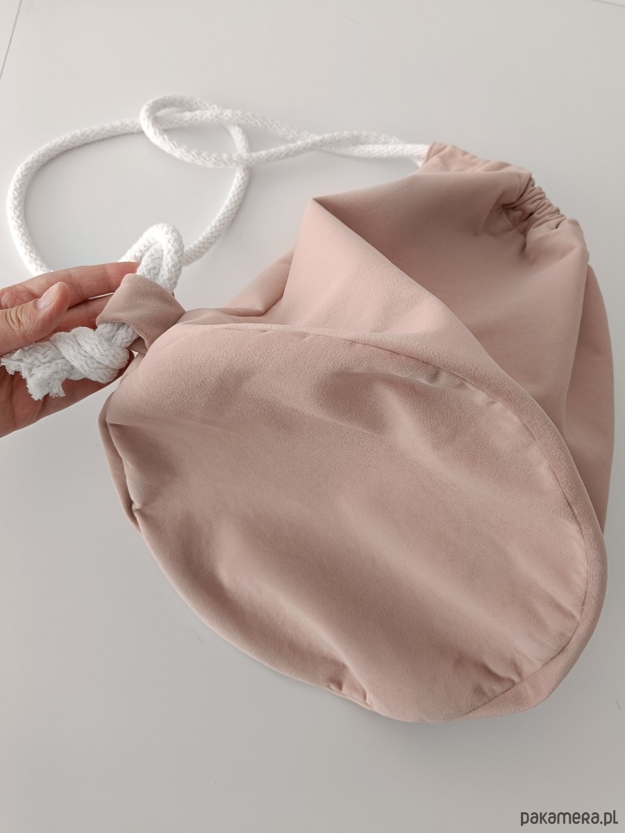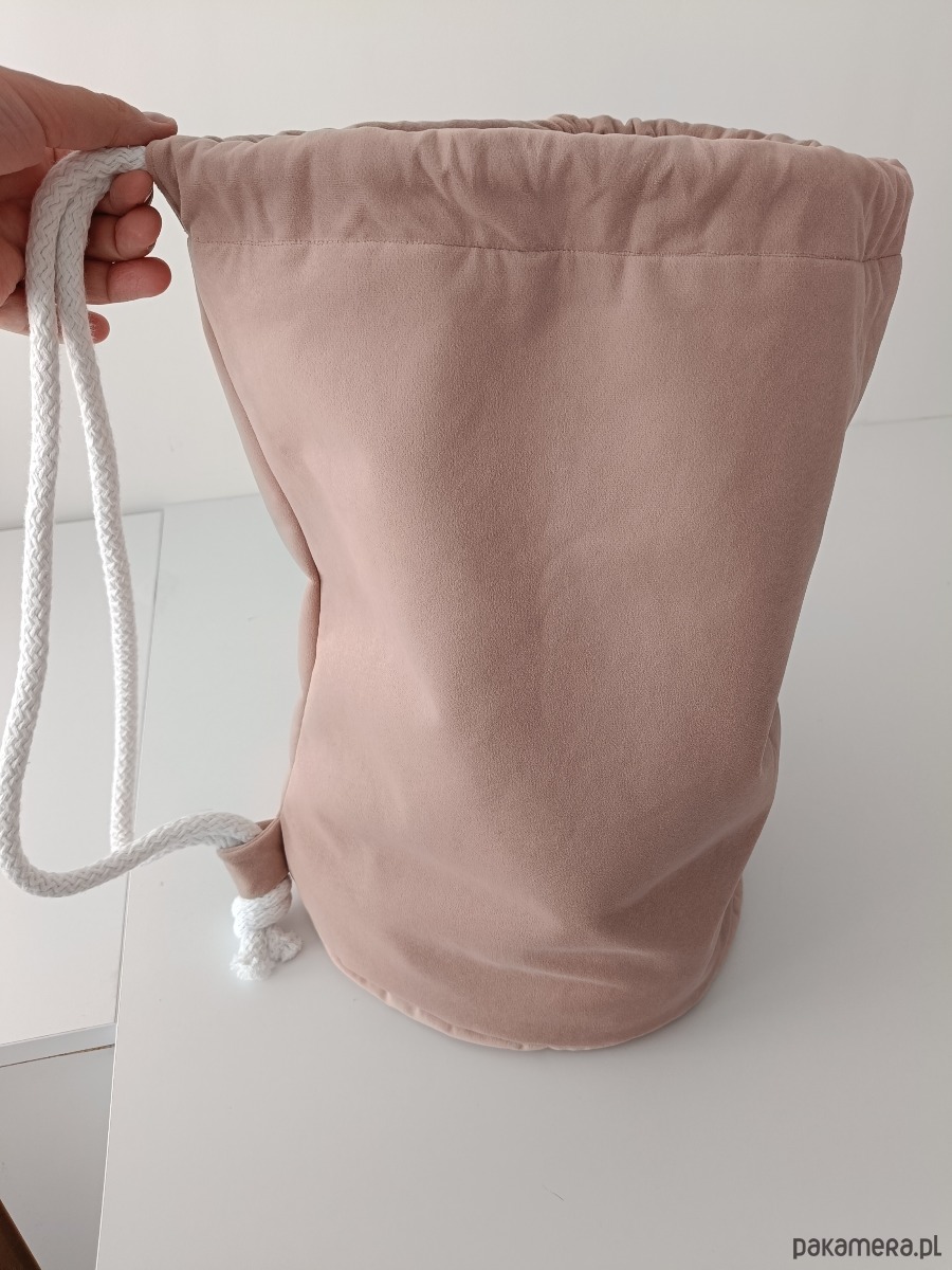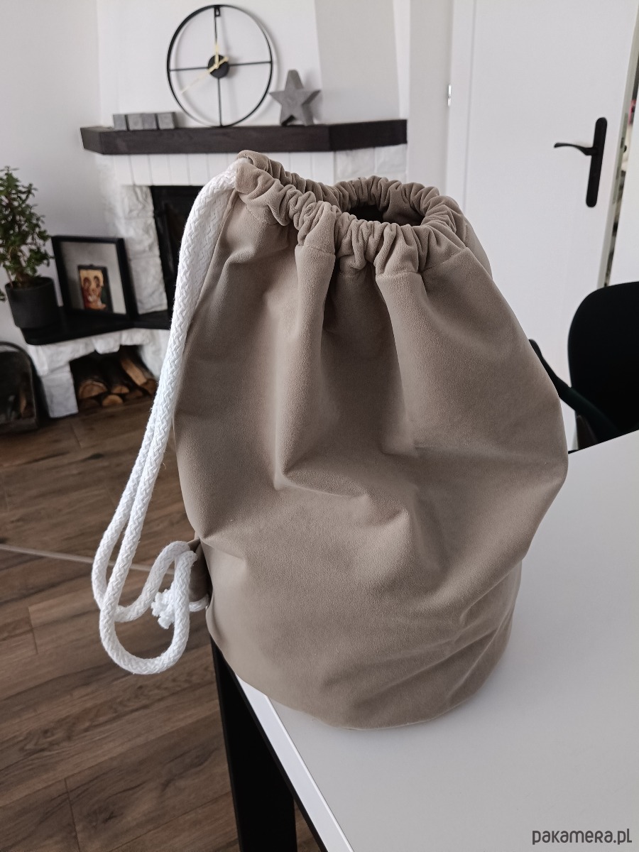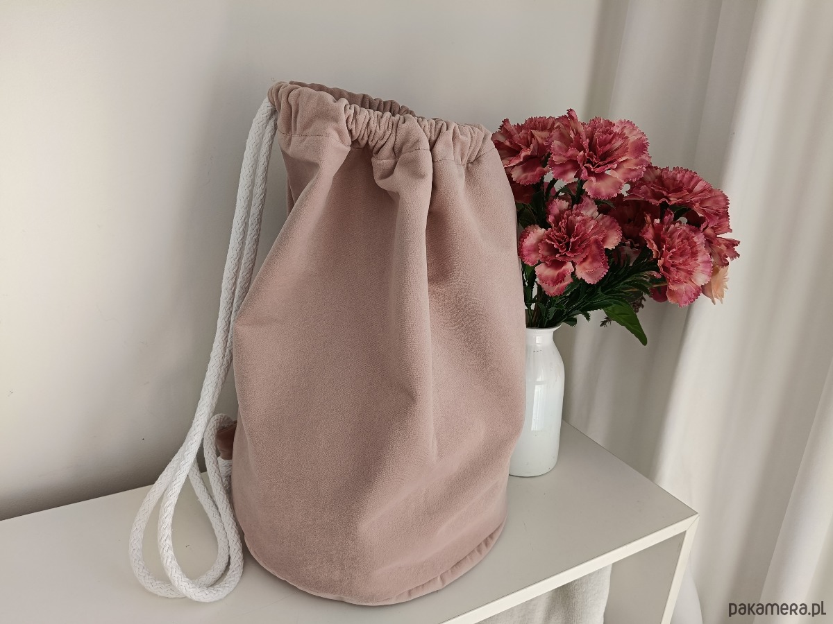 Worek plecak do zadań specjalnych. Duży i pojemny. Idealny min. na plaże, na siłownie, większe zakupy. Wykonany z bardzo grubej, przyjemnej w dotyku i łatwej w utrzymaniu czystości tkaniny - velvet mat. Ramiączka wykonane są z grubego sznurka bawełnianego dzięki czemu nie wrzynają się w plecy. Dzięki swojej sztywności ładnie trzyma formę. Różne kolory do wyboru. Na plecaku możemy wyhaftować dowolny krótki napis, obrazek, imię.