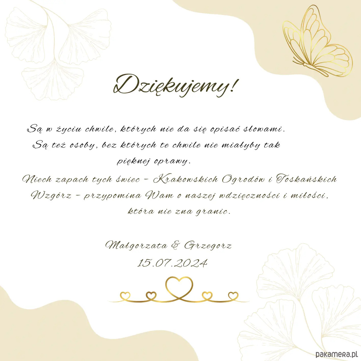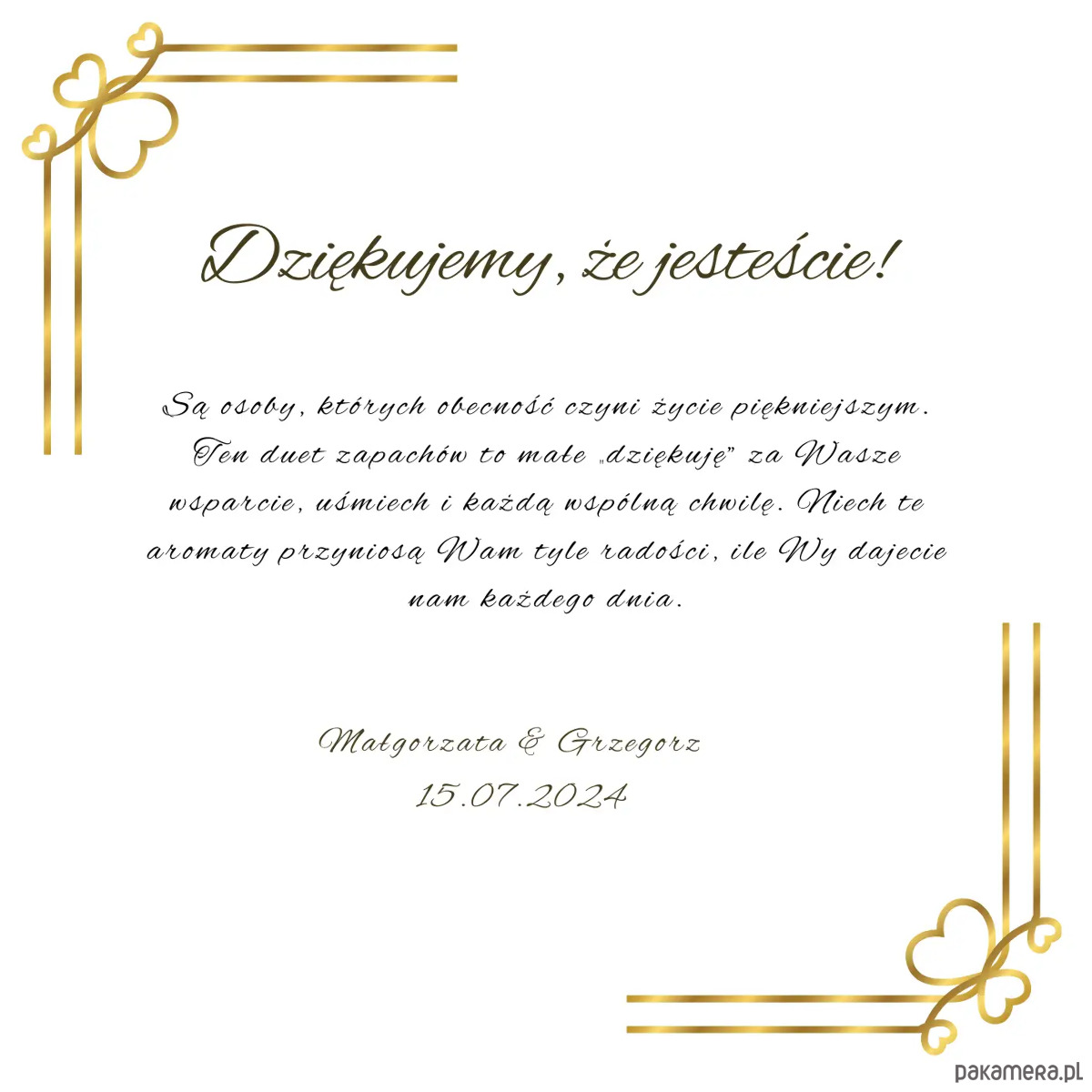 Wiemy, że każde podziękowanie ma swoją unikalną historię. Dlatego wewnątrz zestawu umieszczamy personalizowaną kartę, którą dopasujemy do Twoich potrzeb. Wybierz jeden z naszych 4 gotowych wzorów lub prześlij nam swój własny tekst w polu powyżej, a my przygotujemy dedykację specjalnie dla Ciebie.