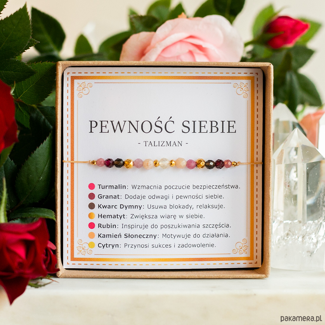 Ten talizman jest dla tych, którzy pragną pokonać wątpliwości, uwierzyć w siebie i odważnie podążać za swoimi marzeniami. Niech Talizman Pewność Siebie z Kamieniami Naturalnymi będzie Twoim wsparciem i motywacją w drodze do osiągnięcia sukcesu i spełnienia osobistego potencjału.