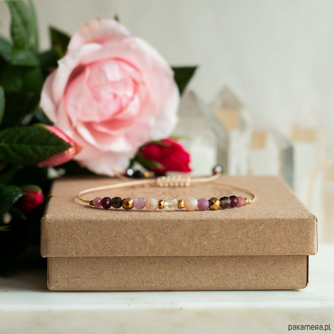 Bransoletka wykonana jest na beżowym sznurku jubilerskim. Opcjonalnie również w kolorze czarnym lub czerwonym, dodaj taką adnotację do zamówienia.