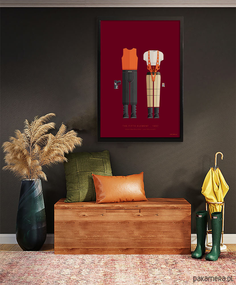Plakat inspirowany filmem Luca Bessona Piąty element (The Fifth Element). Futurystyczna przygoda, latające taksówki, walka dobra ze złem i eksplodujące fantazją kostiumy. To właśnie bezkompromisowo odtworzone kostiumy są tematem plakatu. Dopełniające się wzajemnie stroje głównych postaci, czyli Korbena Dallasa i Leeloo wniosą powiew nieposkromionej wyobraźni do każdego wnętrza.