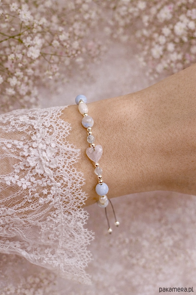 Piękna, romantyczna bransoletka na nylonowym, regulowanym sznurku.