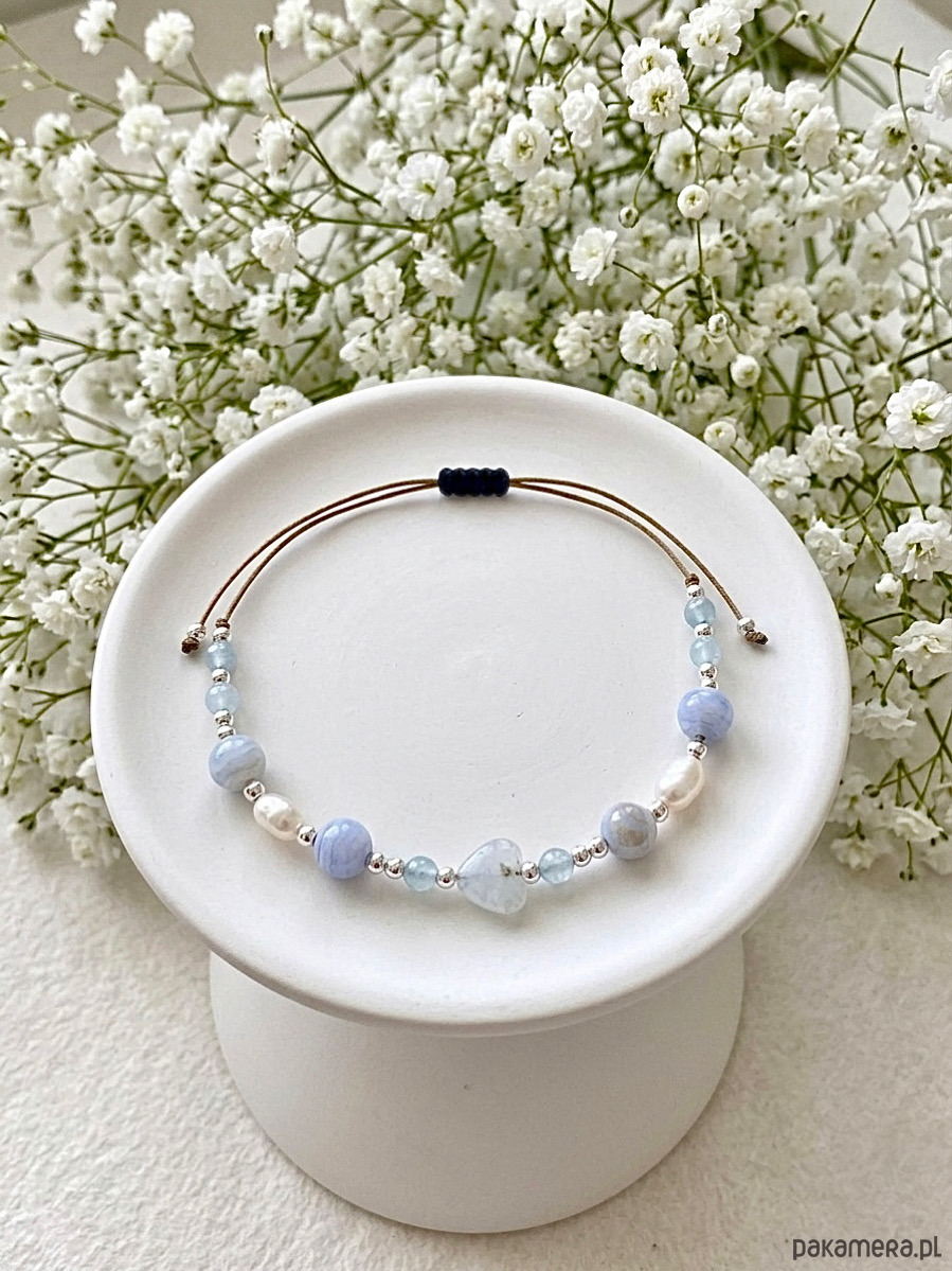 Piękna bransoletka na sznurku z kamieniami agat, akwamaryn