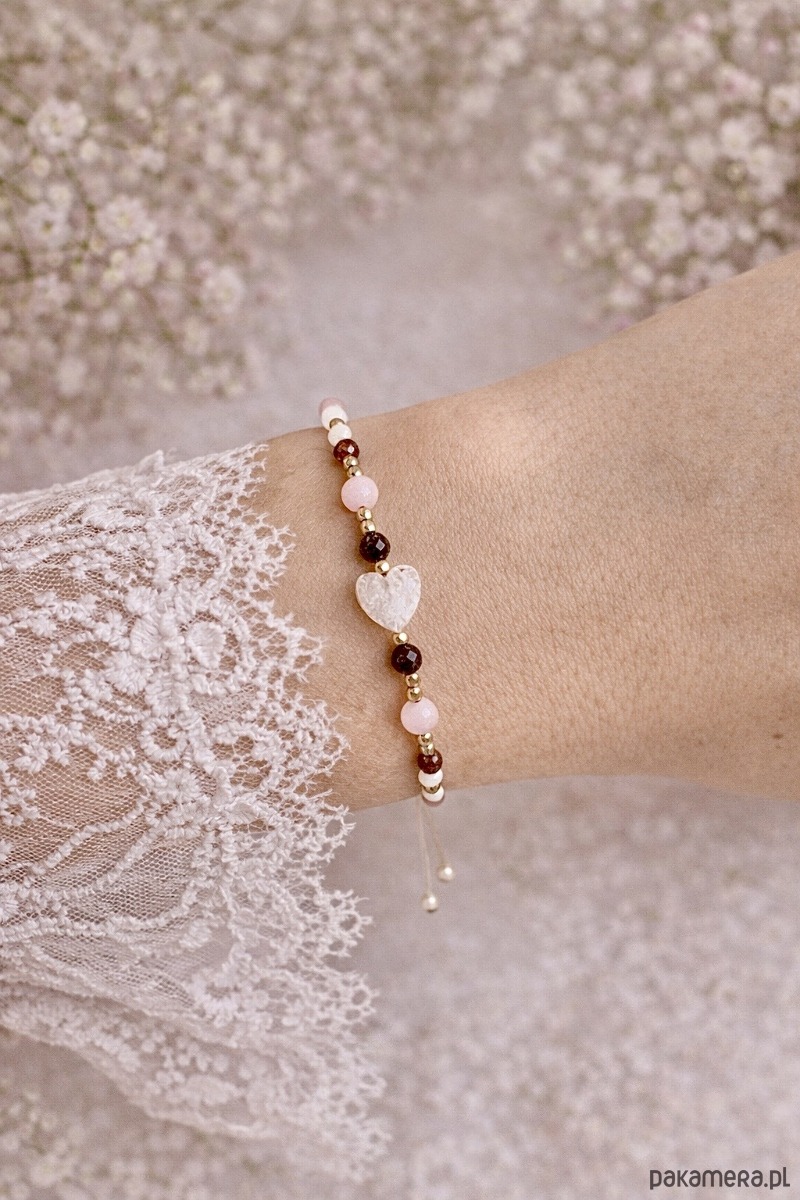 Piękna, romantyczna bransoletka na nylonowym, regulowanym sznurku.
