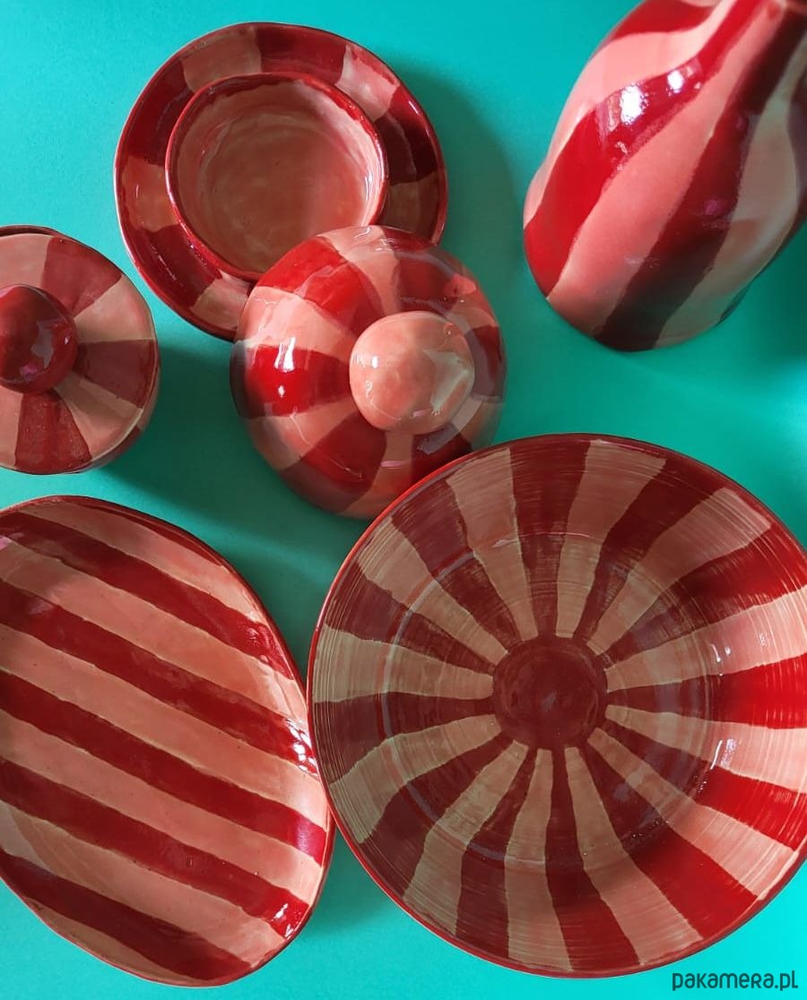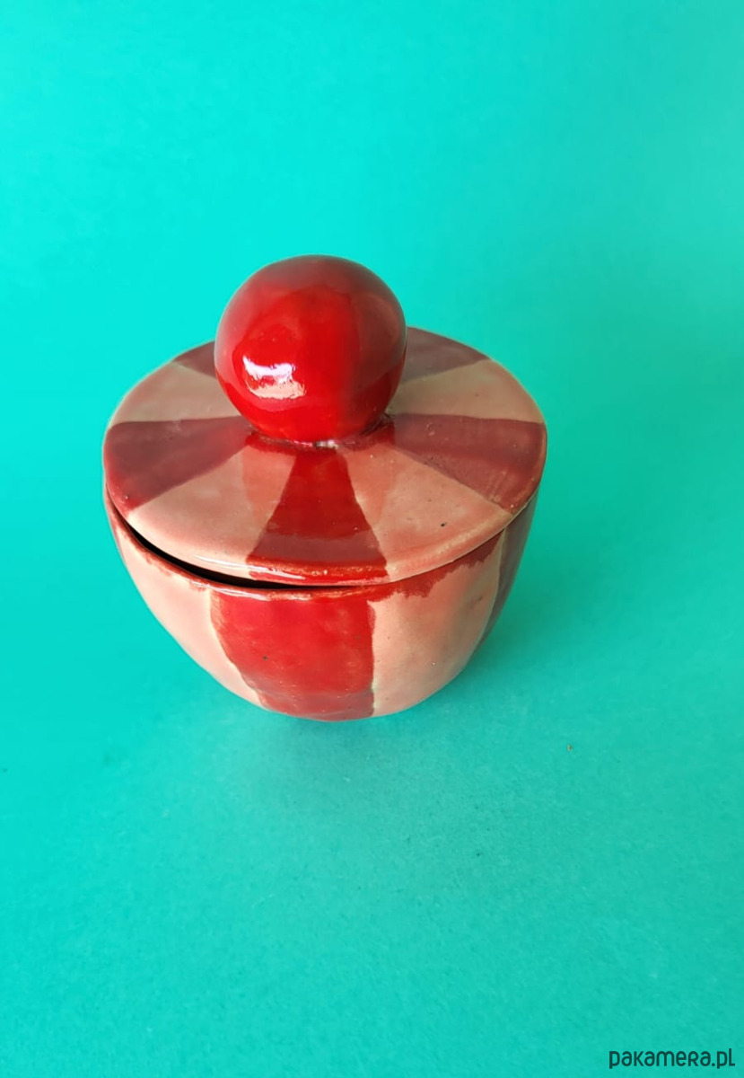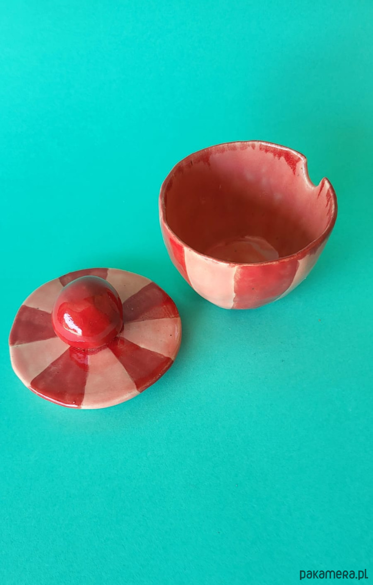 Piękna ceramiczna cukiernica, cukierniczka - różowo czerwona handmade