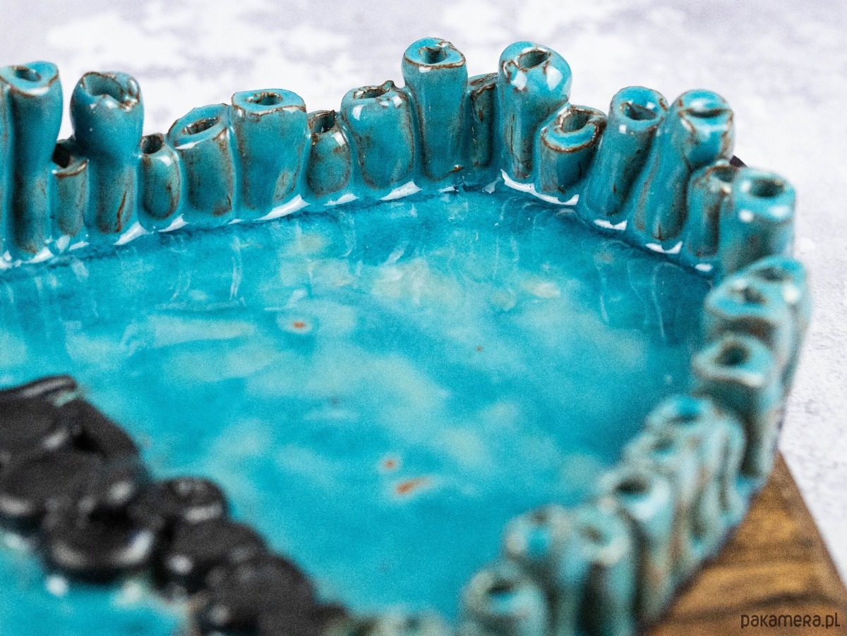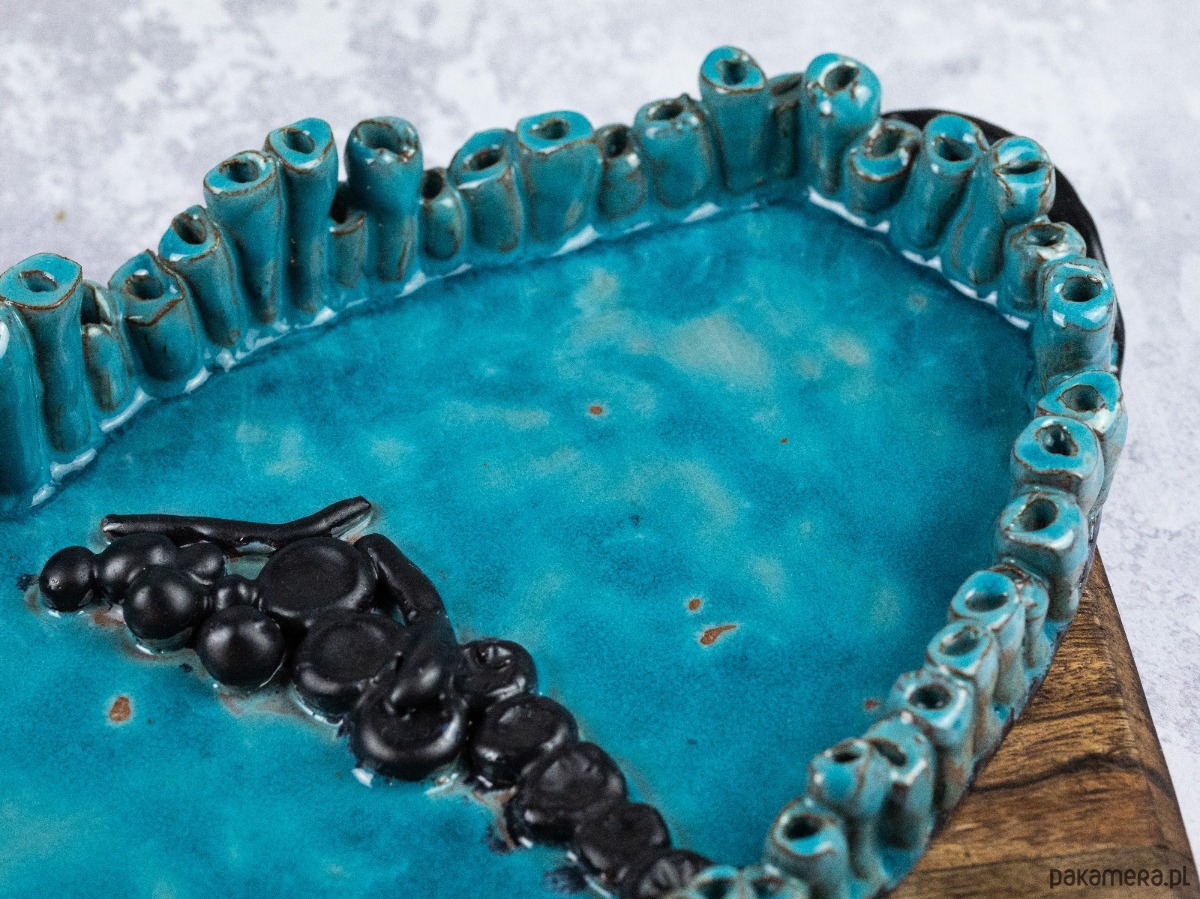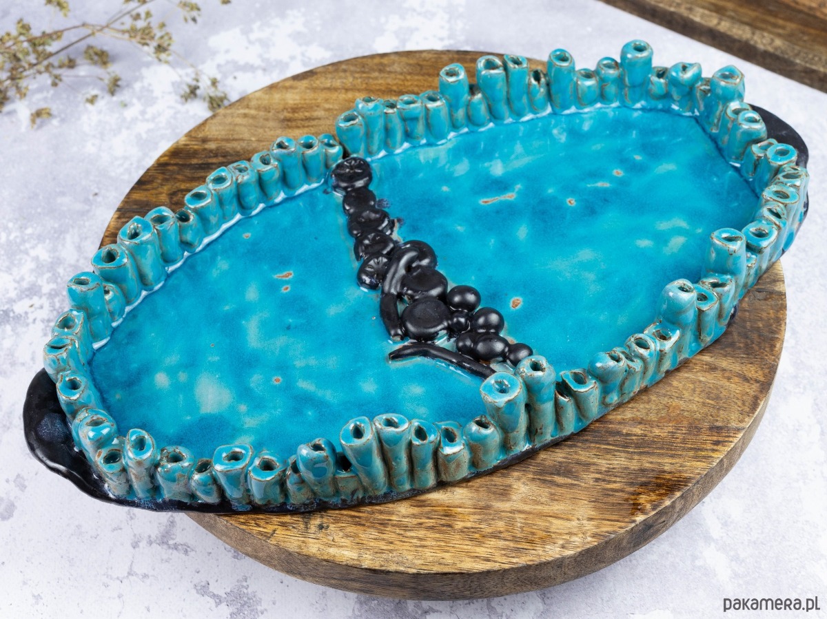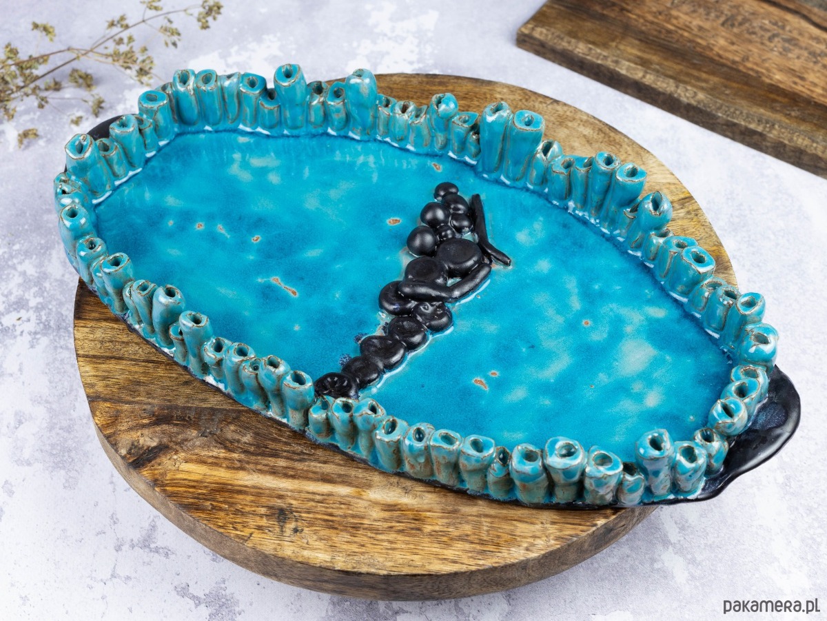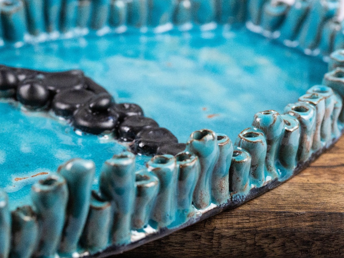 Piękna duża i nietuzinkowa patera w odcieniach turkusu, inspirowana morzem i jego bogactwem.