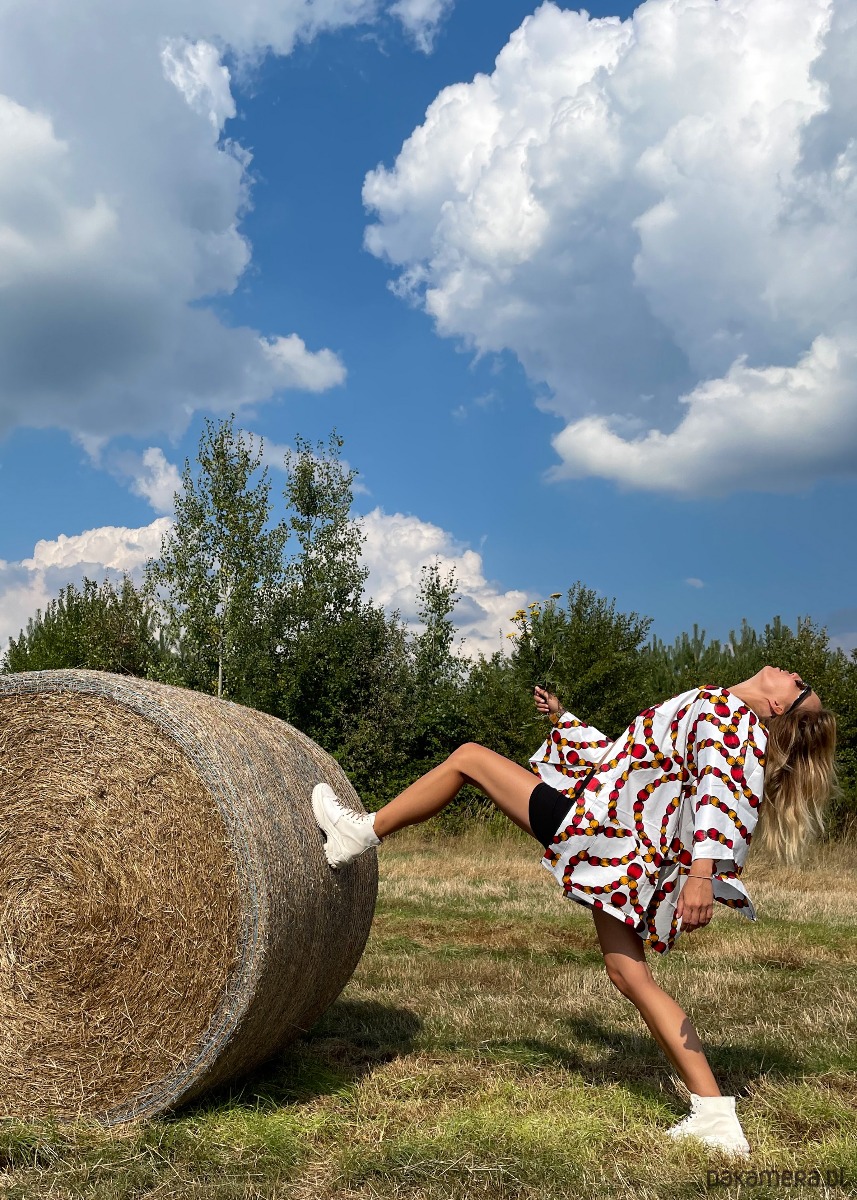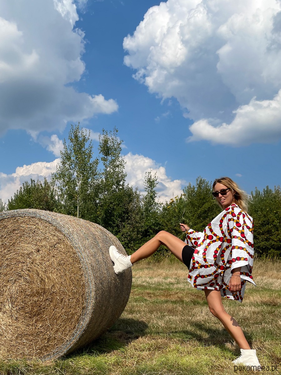 Wyjątkowej urody kimono zachwyca soczystością koloru, dwustronnym wzorem, wygodą i oryginalnością. Wykonane jest z dbałością o każdy szczegół z trwałej, bawełnianej tkaniny African Wax. Wzór na tkaninie powstał za pomocą tradycyjnej metody farbowania, inspirowanej batikiem.