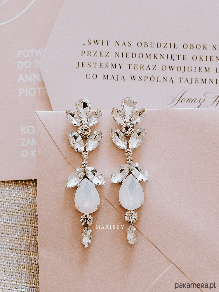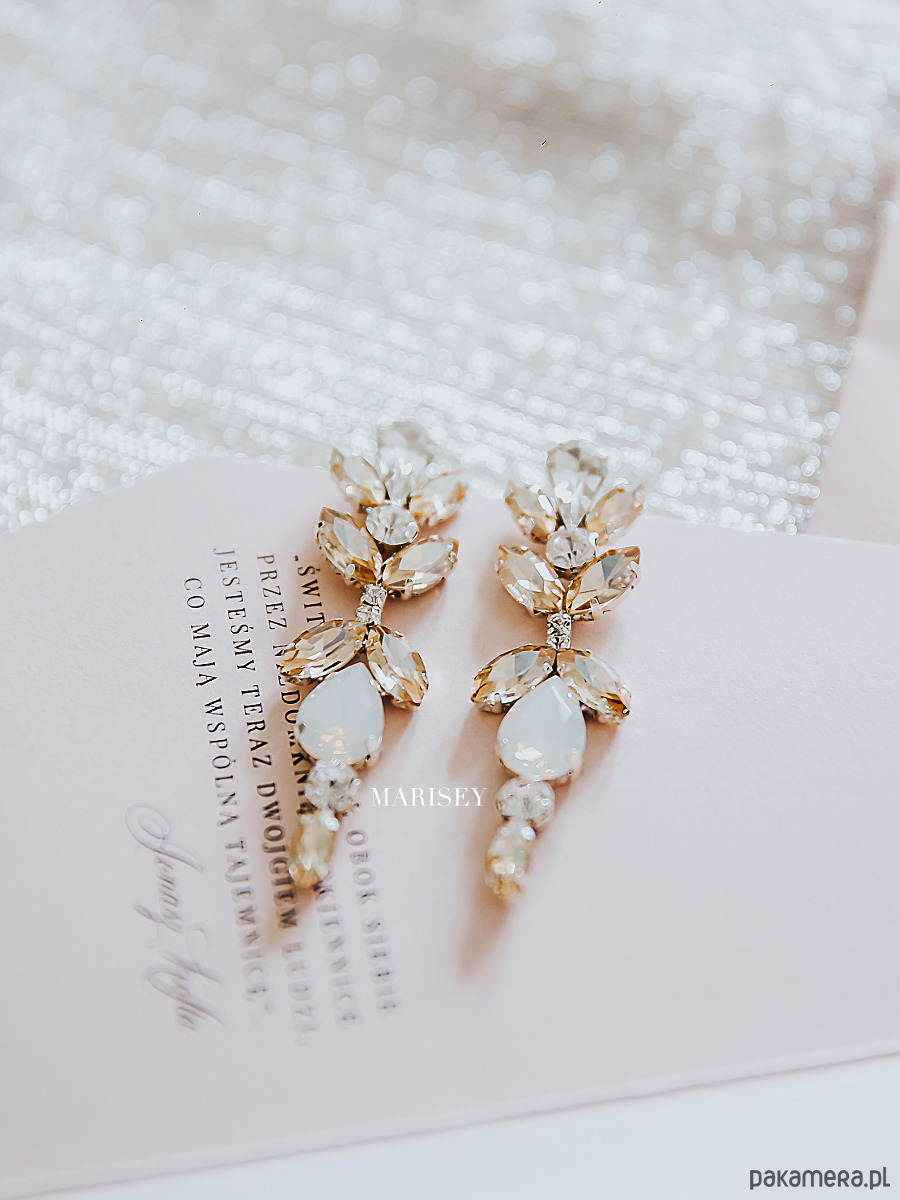 Mistrzowska równowaga dekadenckich połyskujących kryształów i nowoczesnego stylu ślubnego. Te oszałamiające kolczyki ślubne oddają estetykę klasycznej formy, tworząc nieprzeciętny, subtelny blask, który będzie Ci towarzyszył w tym wyjątkowym dniu