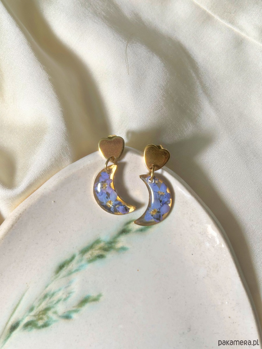 Kolczyki mają lekki, elegancki charakter, idealny zarówno do codziennych stylizacji, jak i na wyjątkowe okazje. Przezroczysta żywica z subtelnym połyskiem podkreśla naturalny błękit kwiatów, tworząc efekt biżuterii, która przyciąga spojrzenia, ale nie przytłacza.