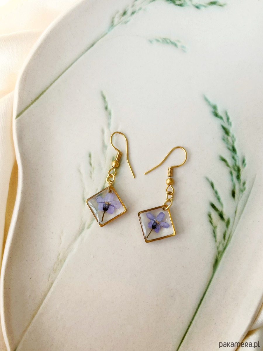 🌸 Kolczyki z niezapominajkami w żywicy – subtelne piękno natury zamknięte na zawsze