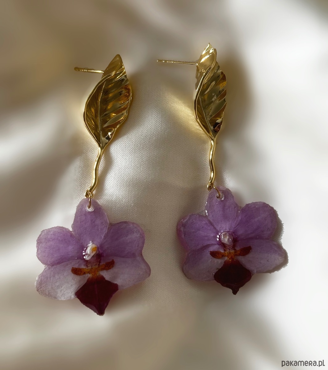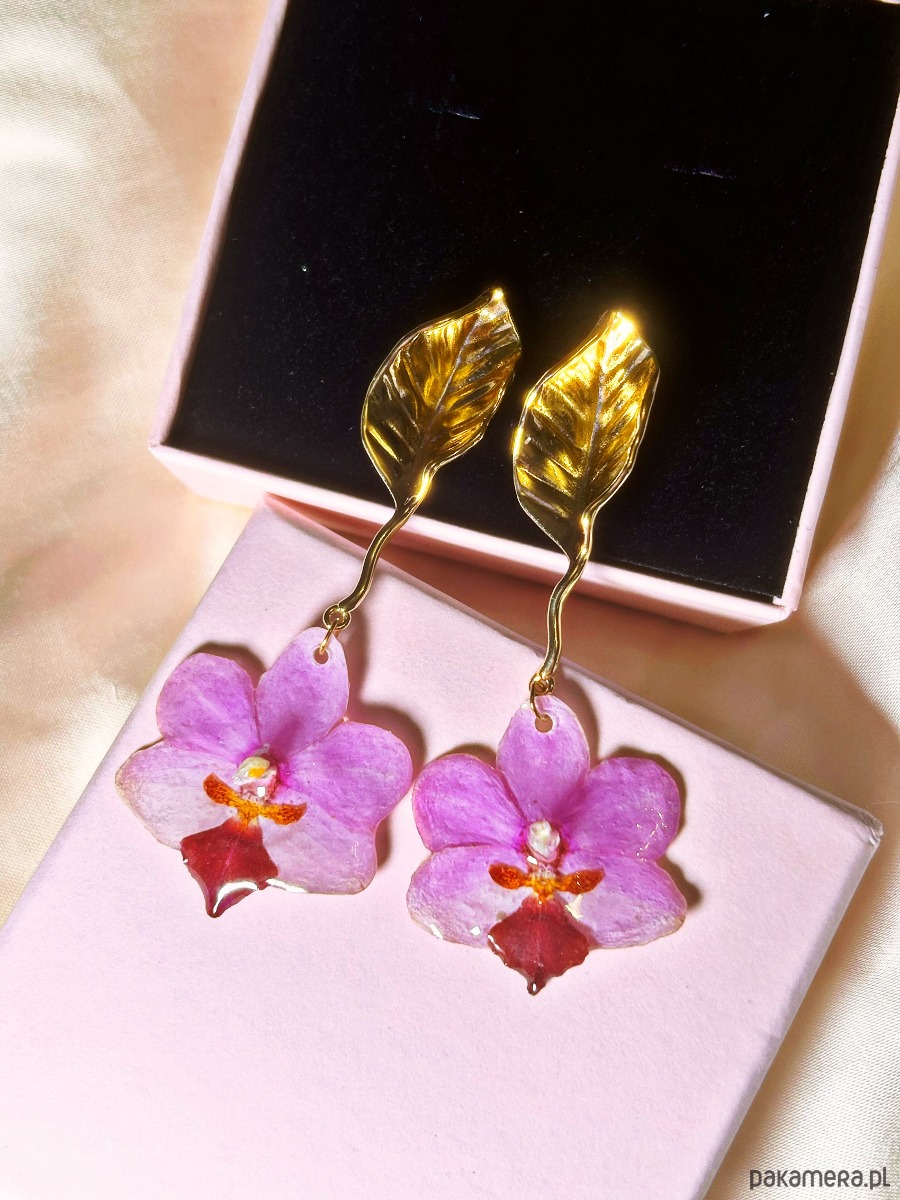 ✨ Kolczyki z prawdziwych storczyków – subtelna magia natury w złotej oprawie