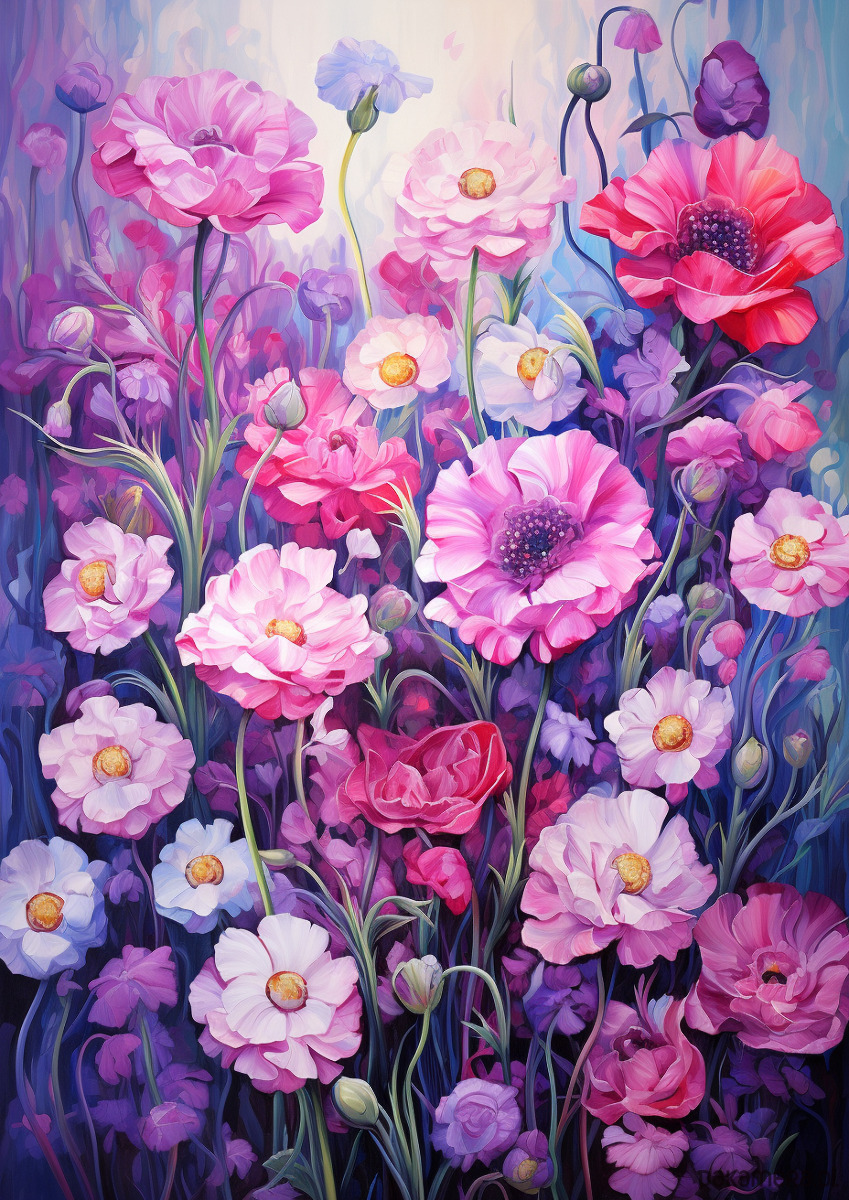 Piękne kwiaty - Obraz na płótnie - Druk, Blejtrama - Akwarela, Olej, Loft #17