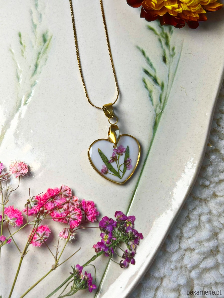 Piękny naszyjnik z kwiatami zamkniętymi w żywicy