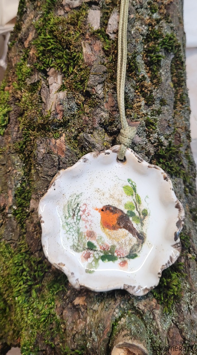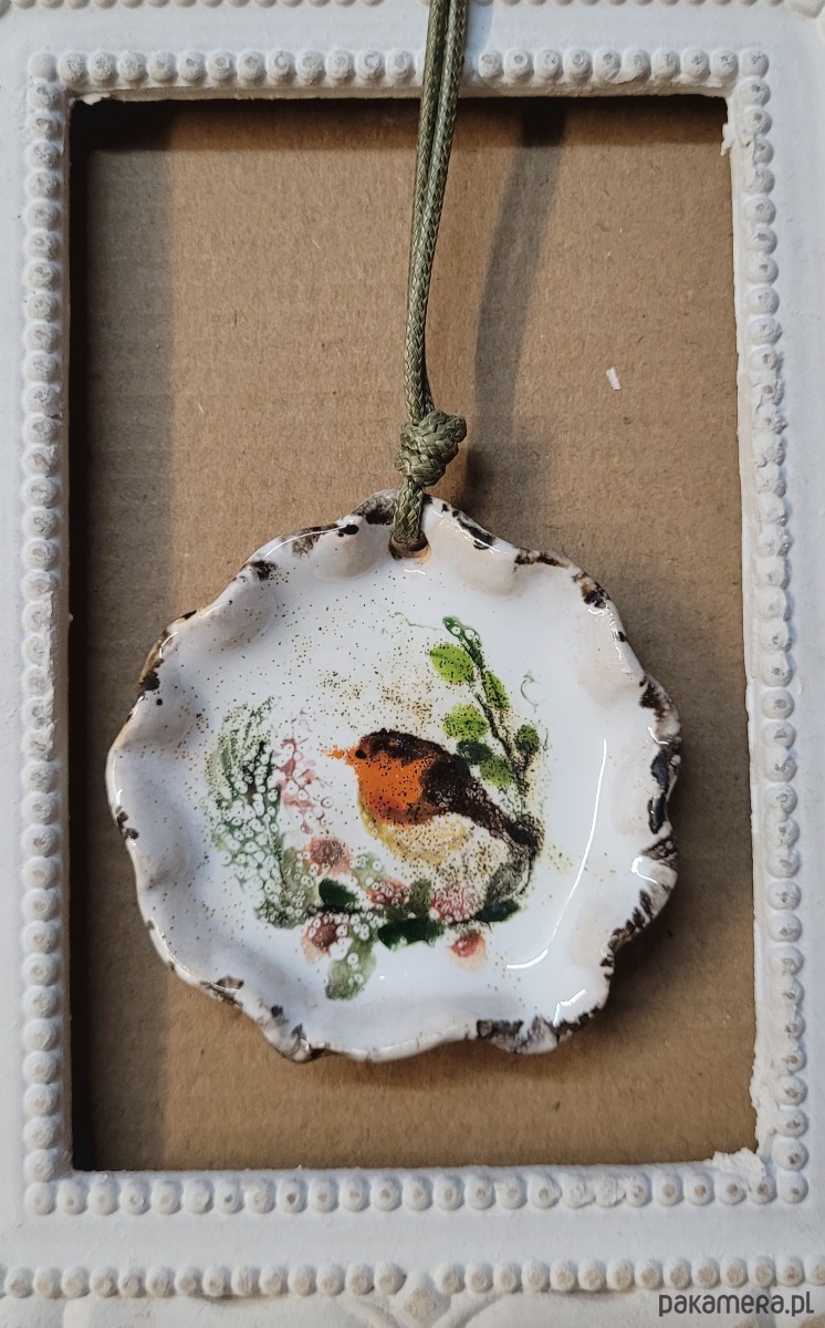 Ten wisior to małe dzieło sztuki użytkowej, wykonane w całości ręcznie – od uformowania gliny, przez wypał, aż po ręczne malowanie i szkliwienie.