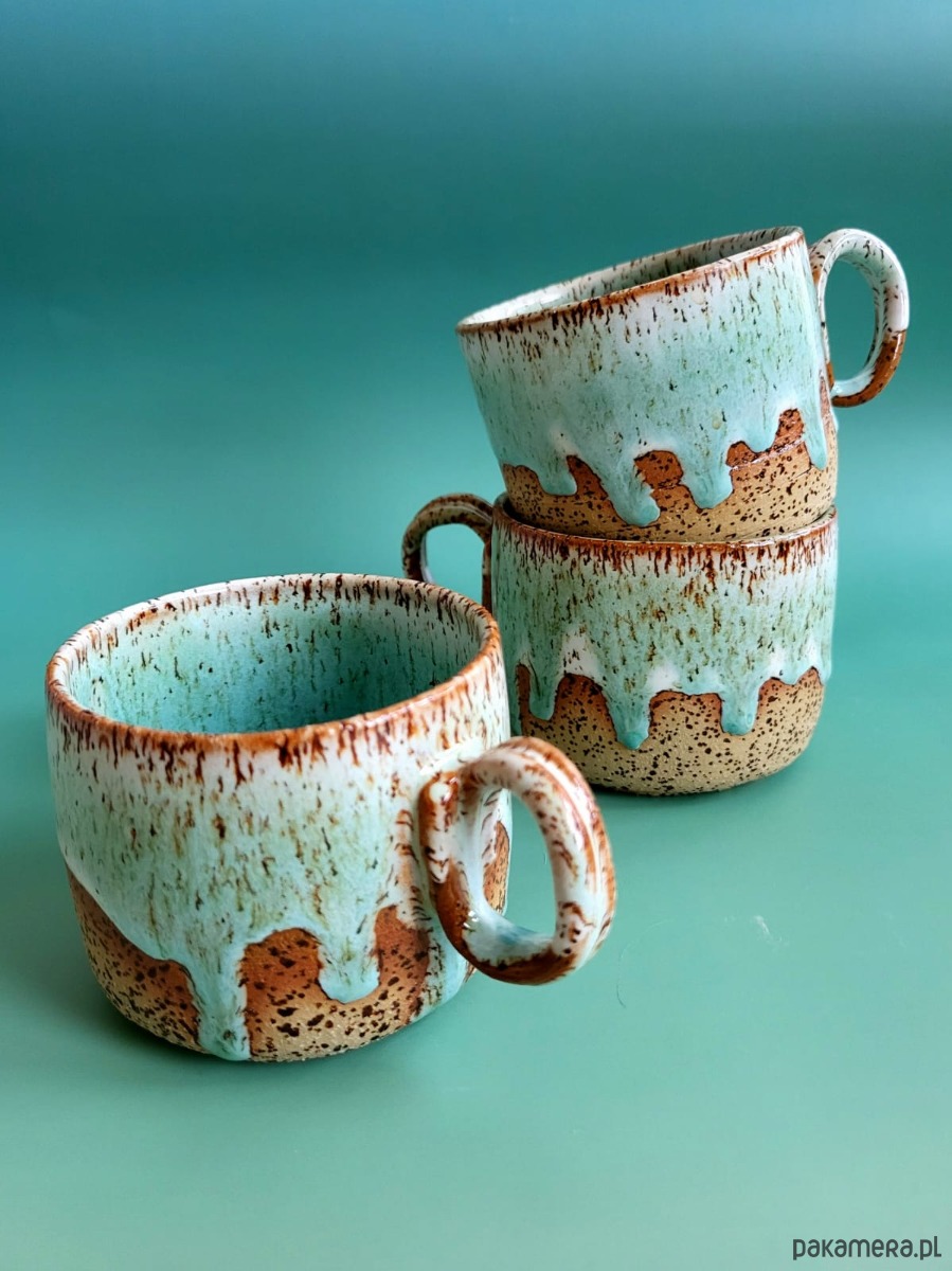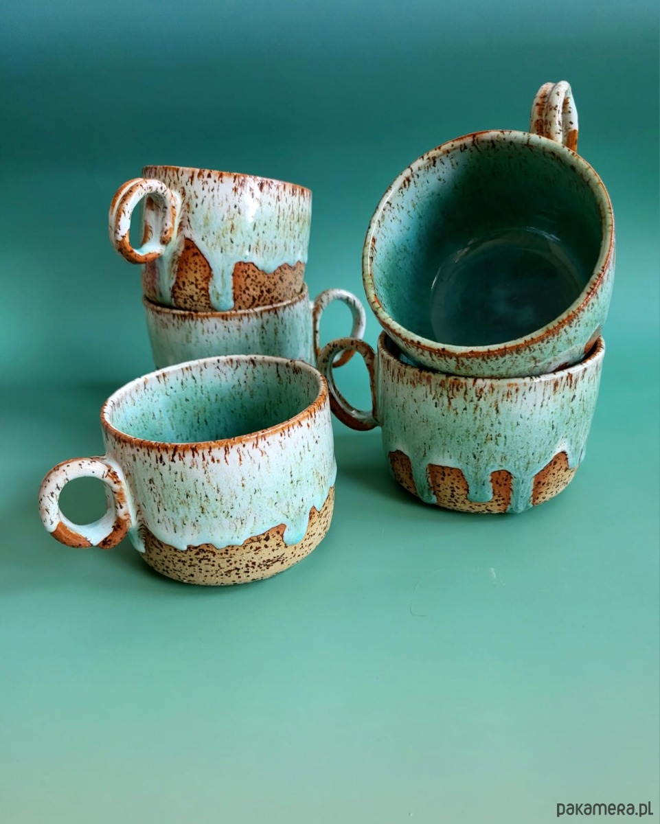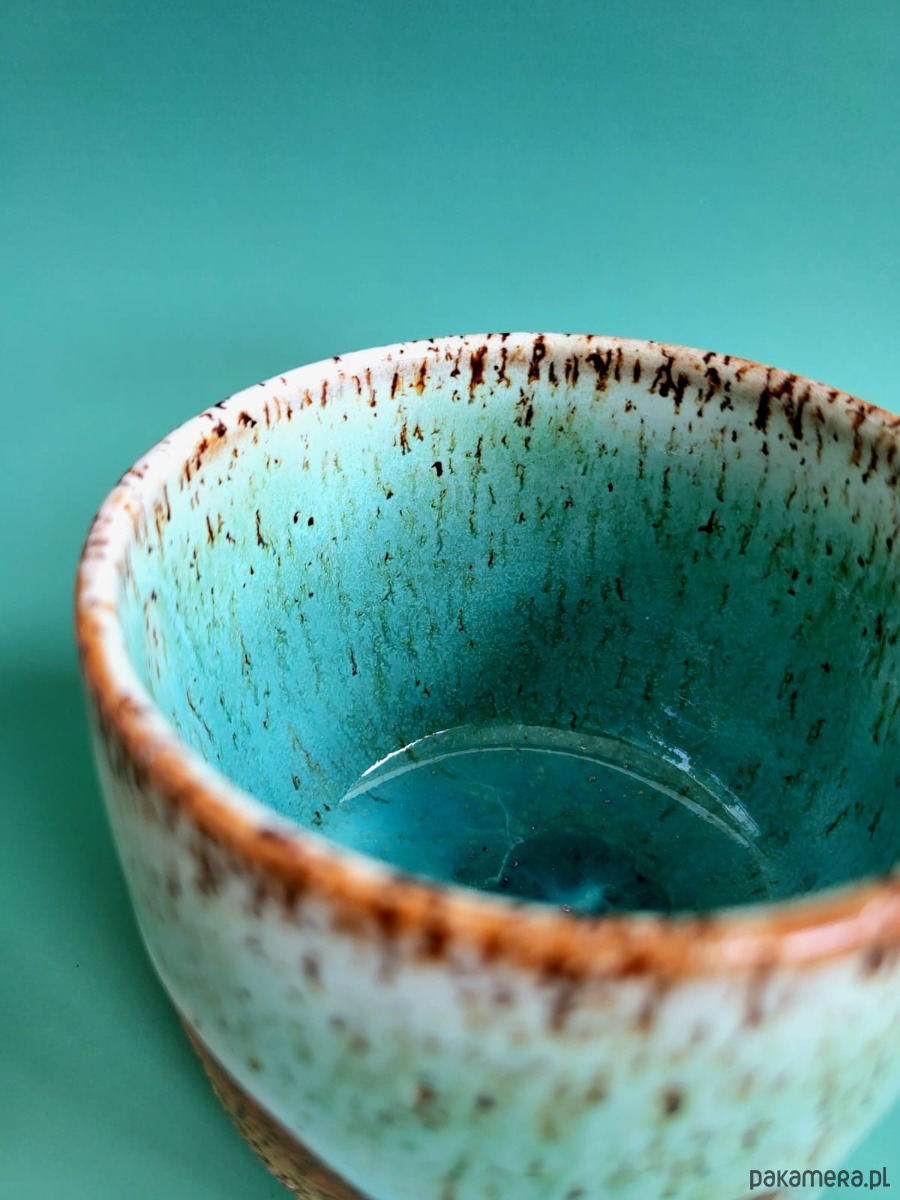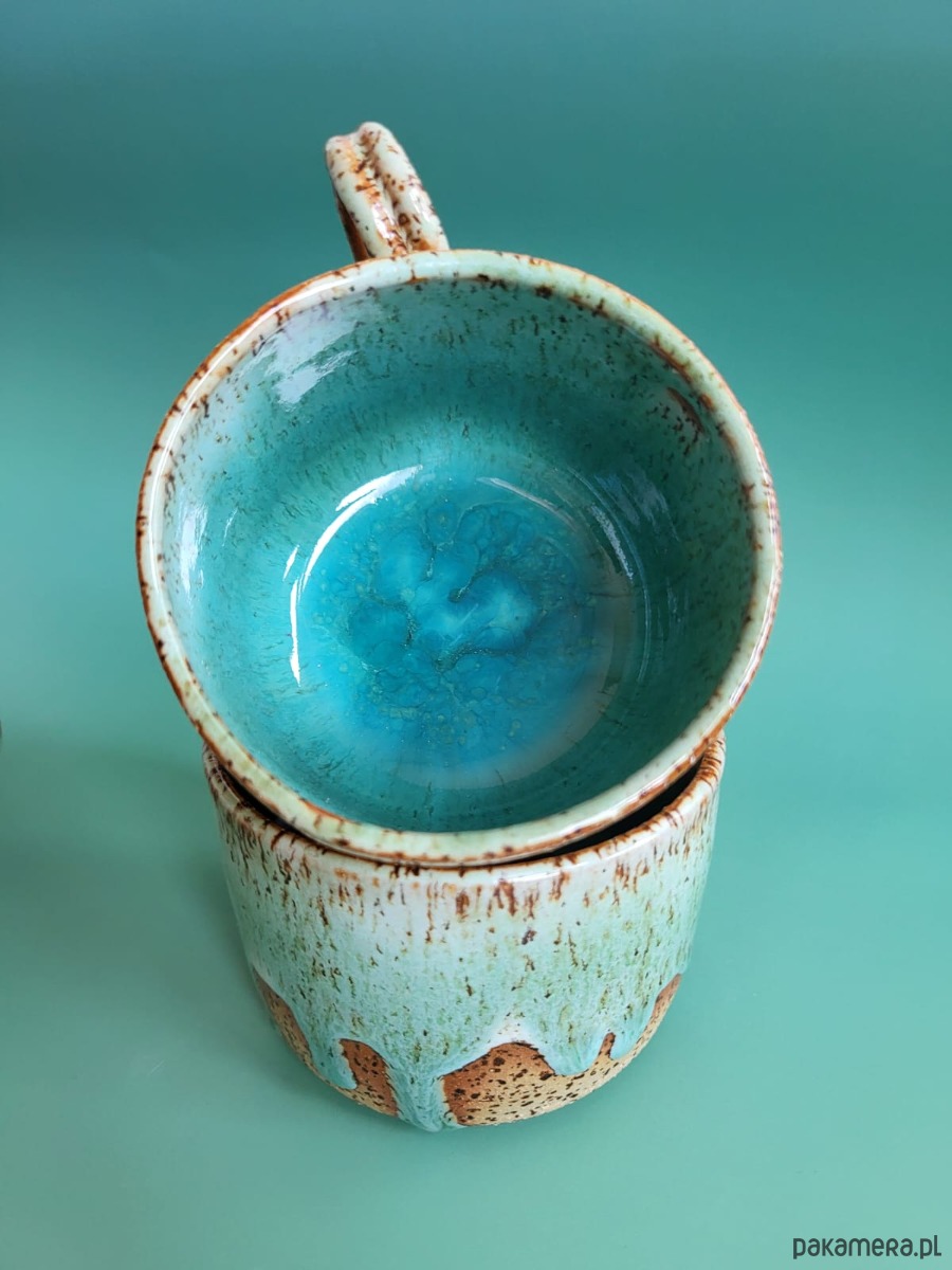 Piękny turkusowy ceramiczny ręcznie robiony kubek / filiżanka. Na prezent