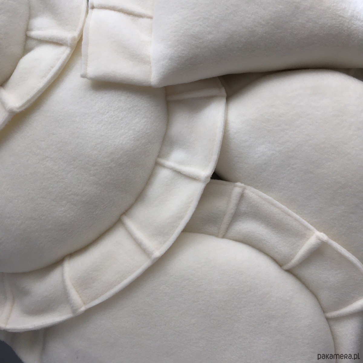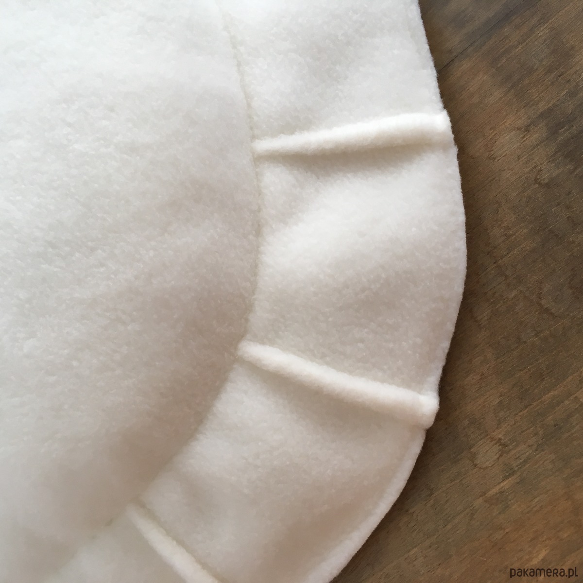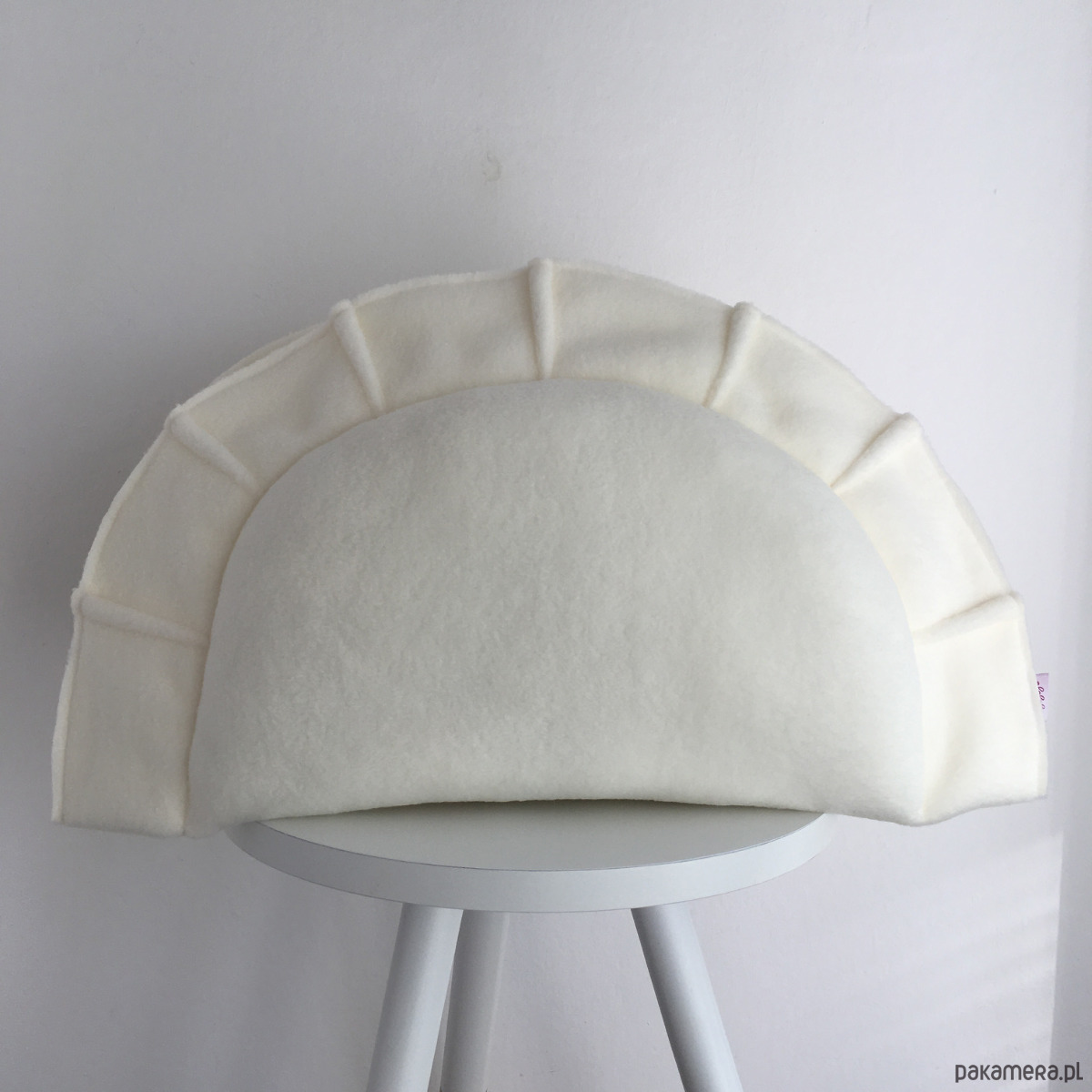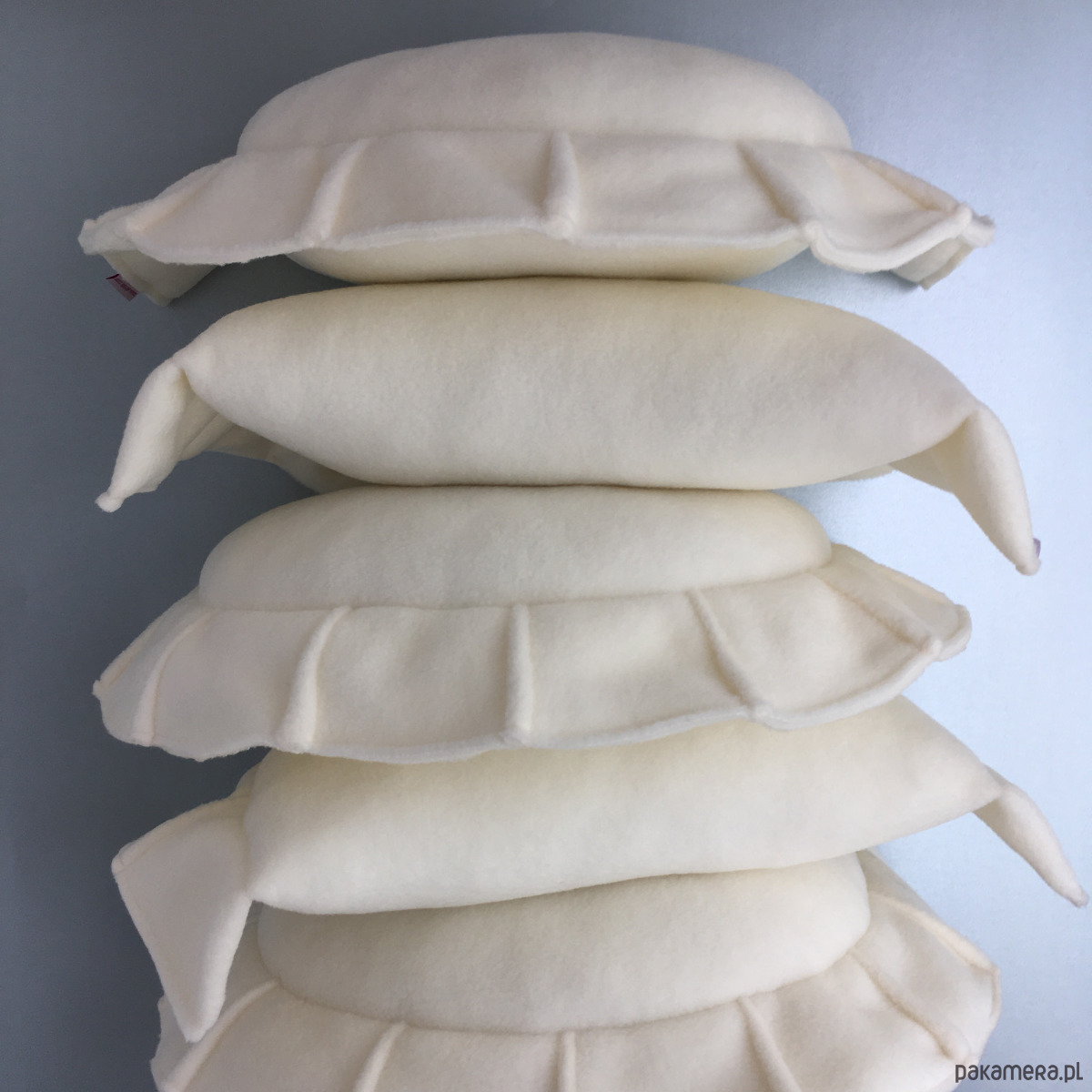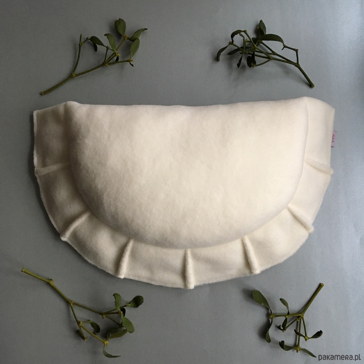 Miękki polarowy pierożek-poduszka, z nadzieniem antyalergicznym (mięciutka, puszysta włóknina poliestrowa). Niskokaloryczny i bezglutenowy ;-)